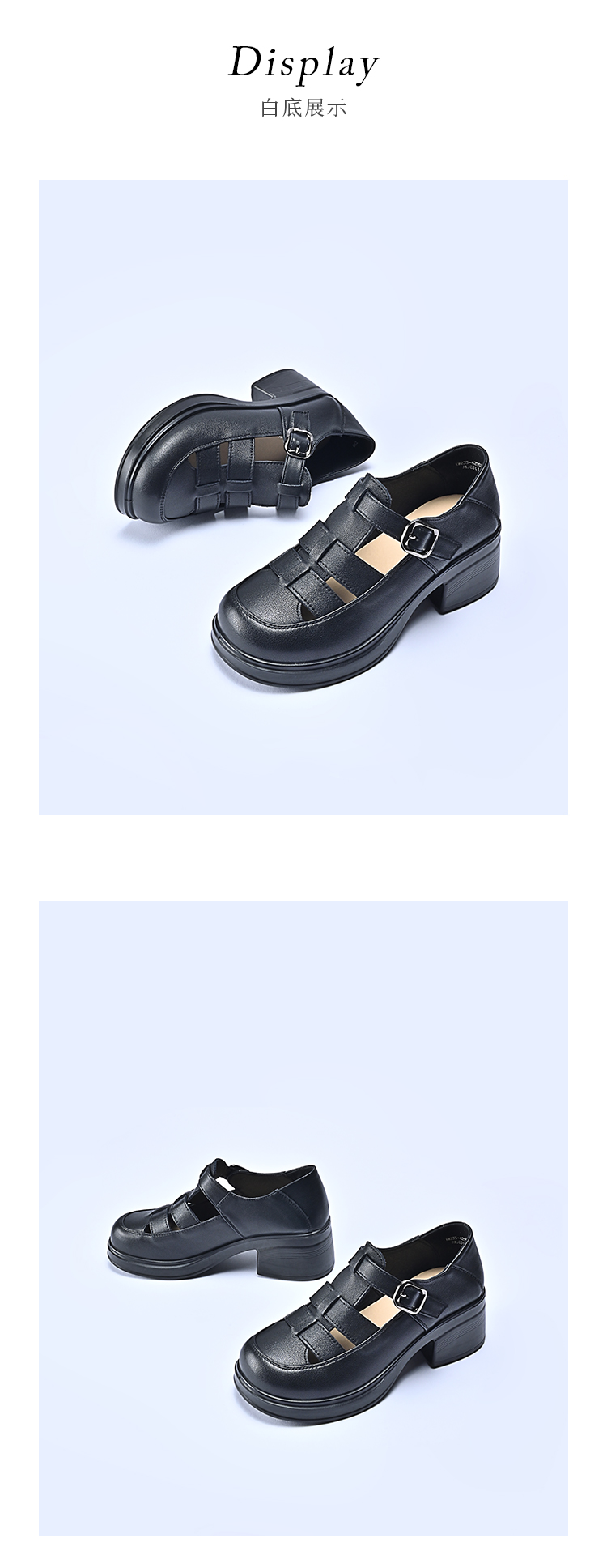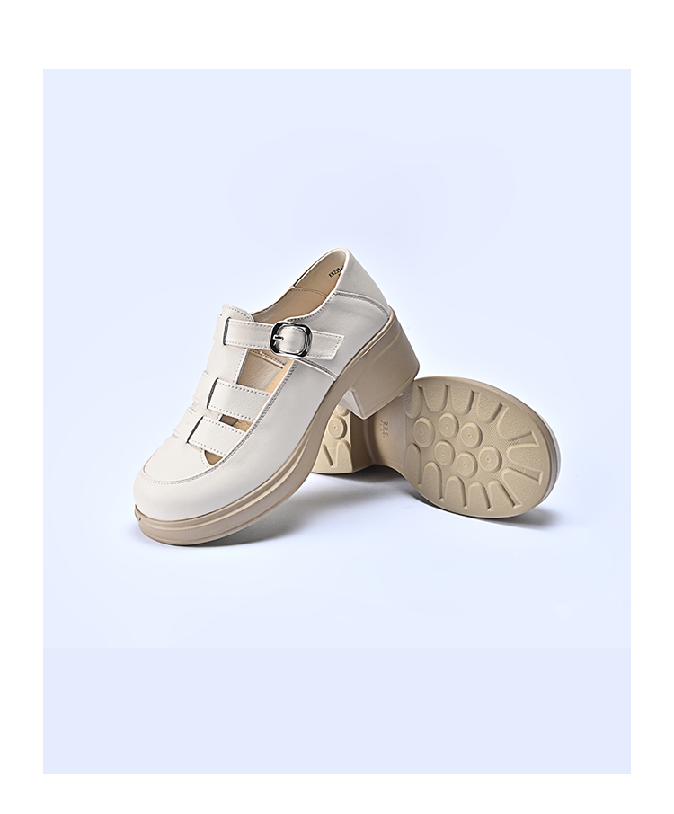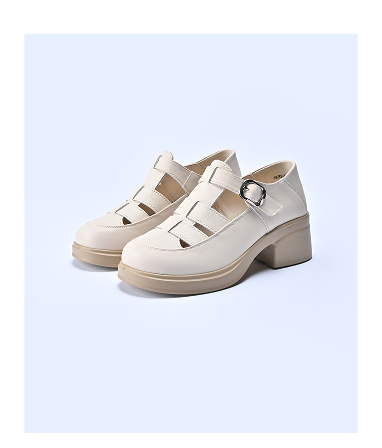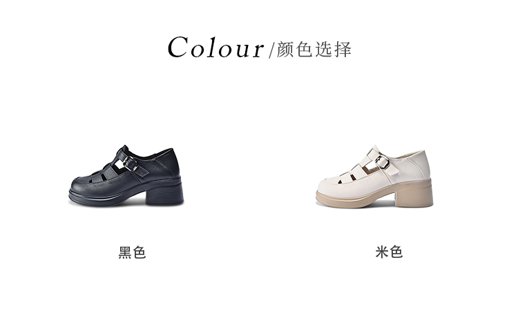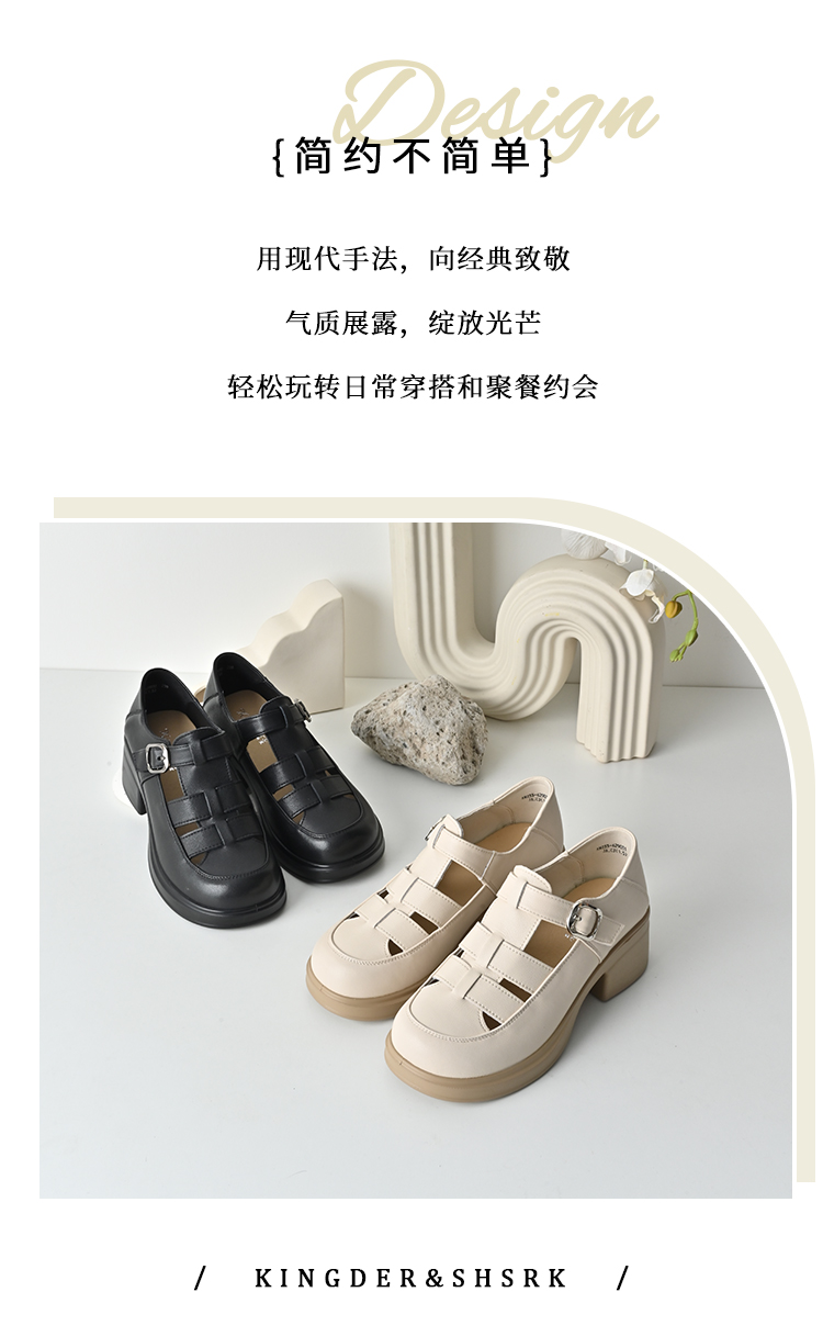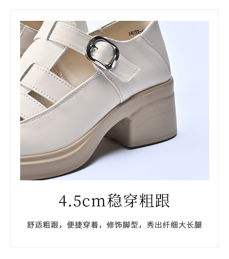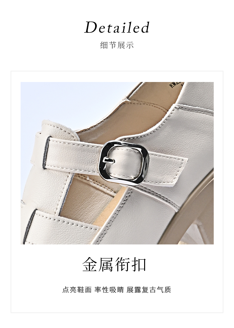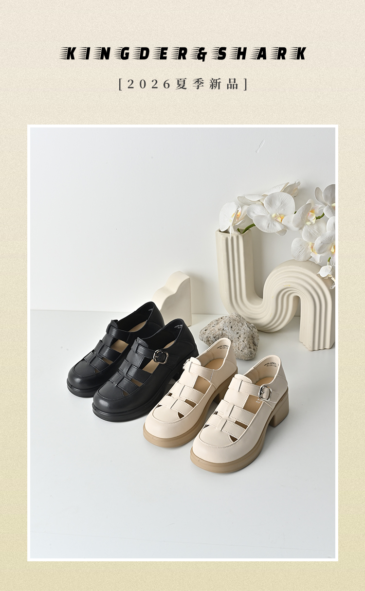 经典鲨2026夏季专柜新品牛皮革百搭圆头4.5cm罗马编织凉鞋女KW233-629031