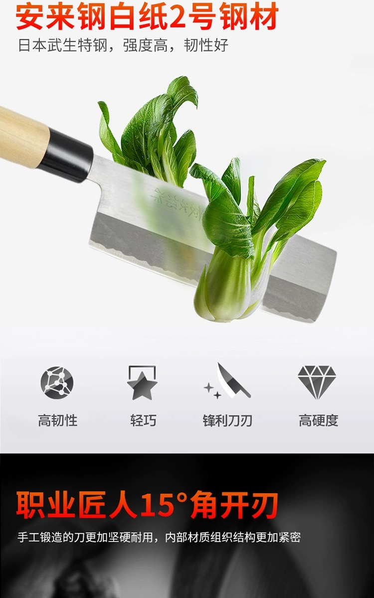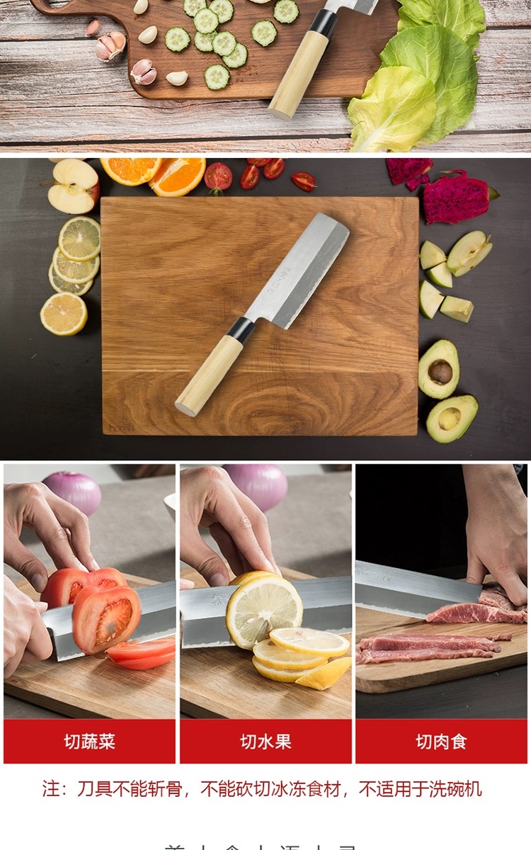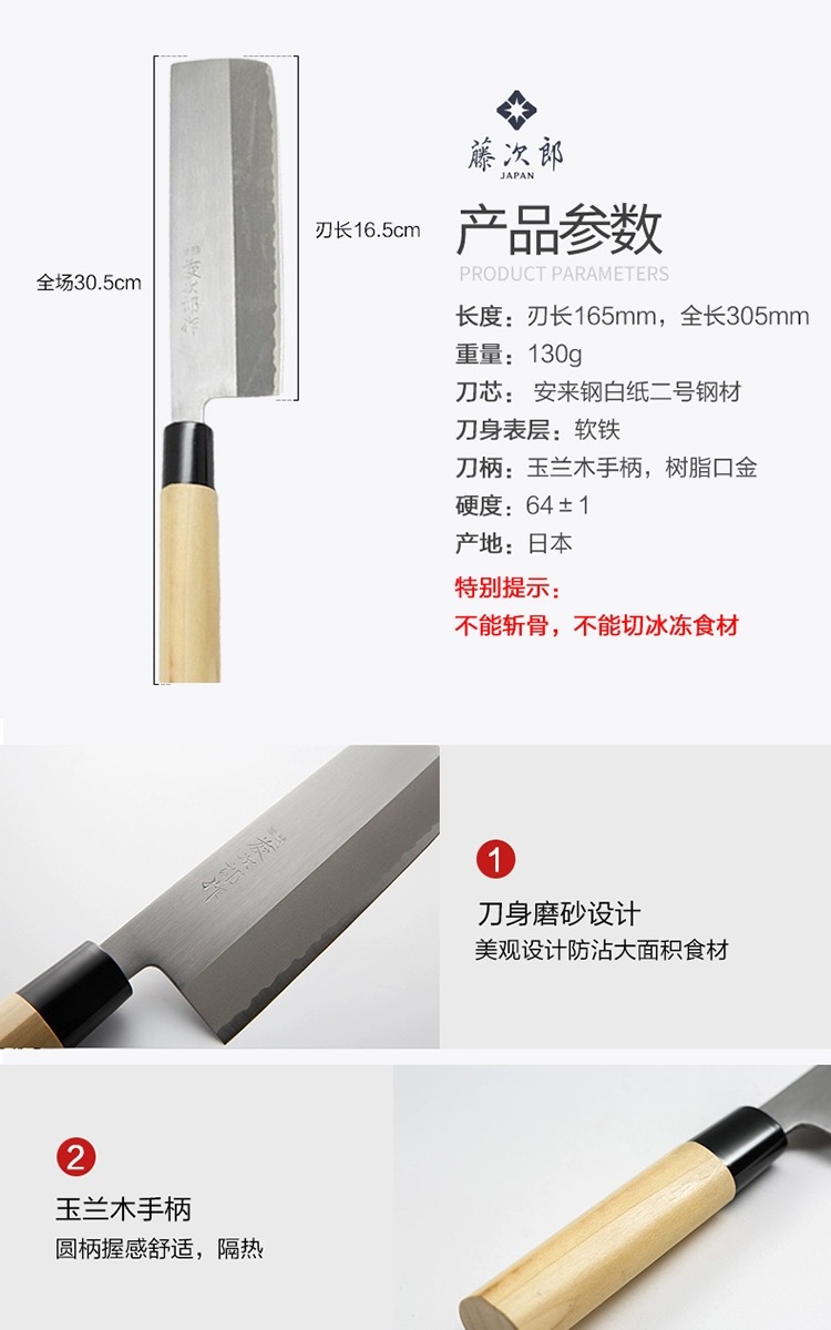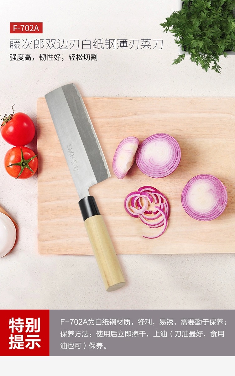 藤次郎日本进口 白纸钢薄刃刀家用超薄锋利切片刀小菜刀F702A(本色)