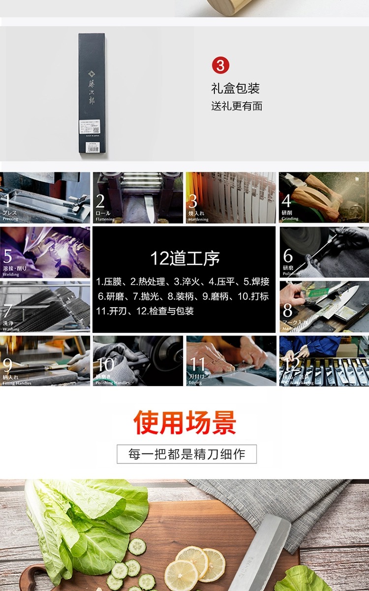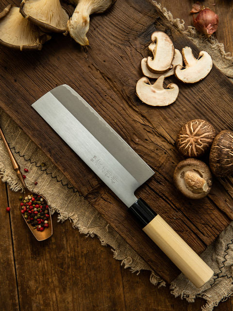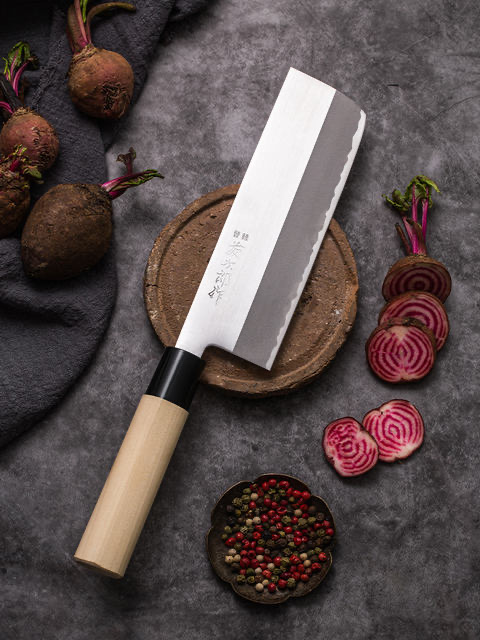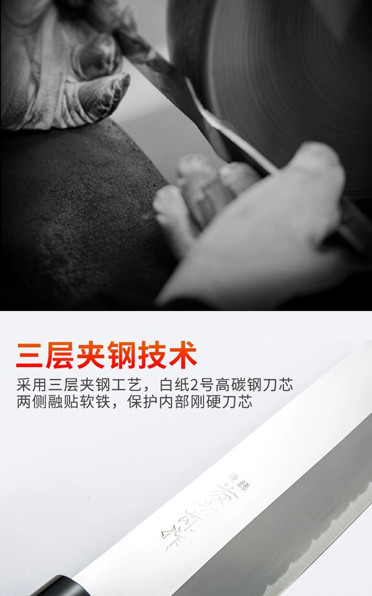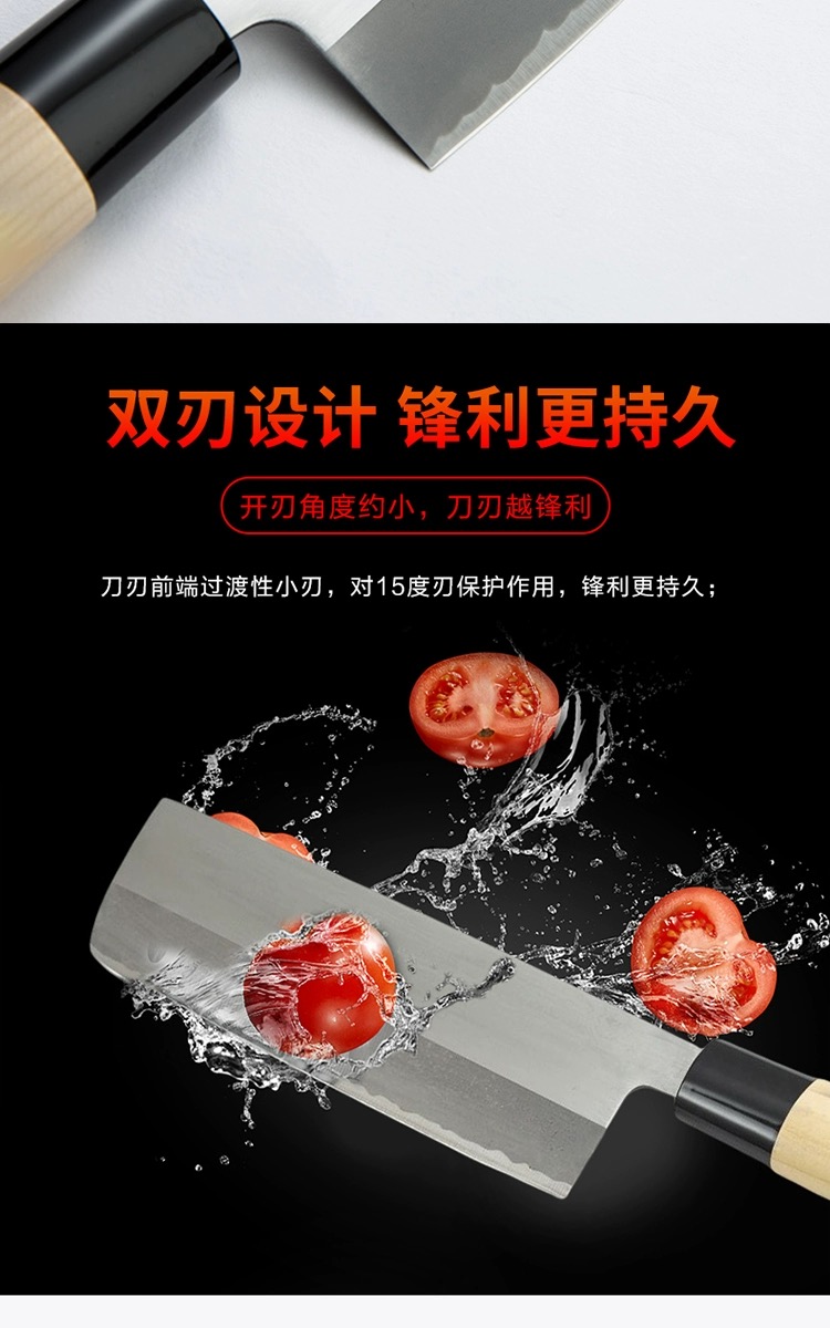 藤次郎日本进口 白纸钢薄刃刀家用超薄锋利切片刀小菜刀F702A(本色)
