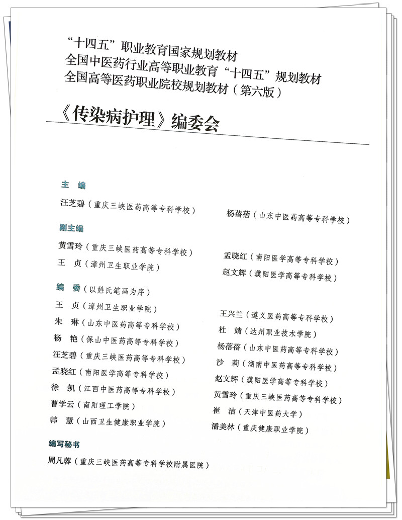 传染病护理(第三版)汪芝碧 杨蓓蓓 主编 中国中医药出版社 全国中医药行业高等职业教育十四五规划教材