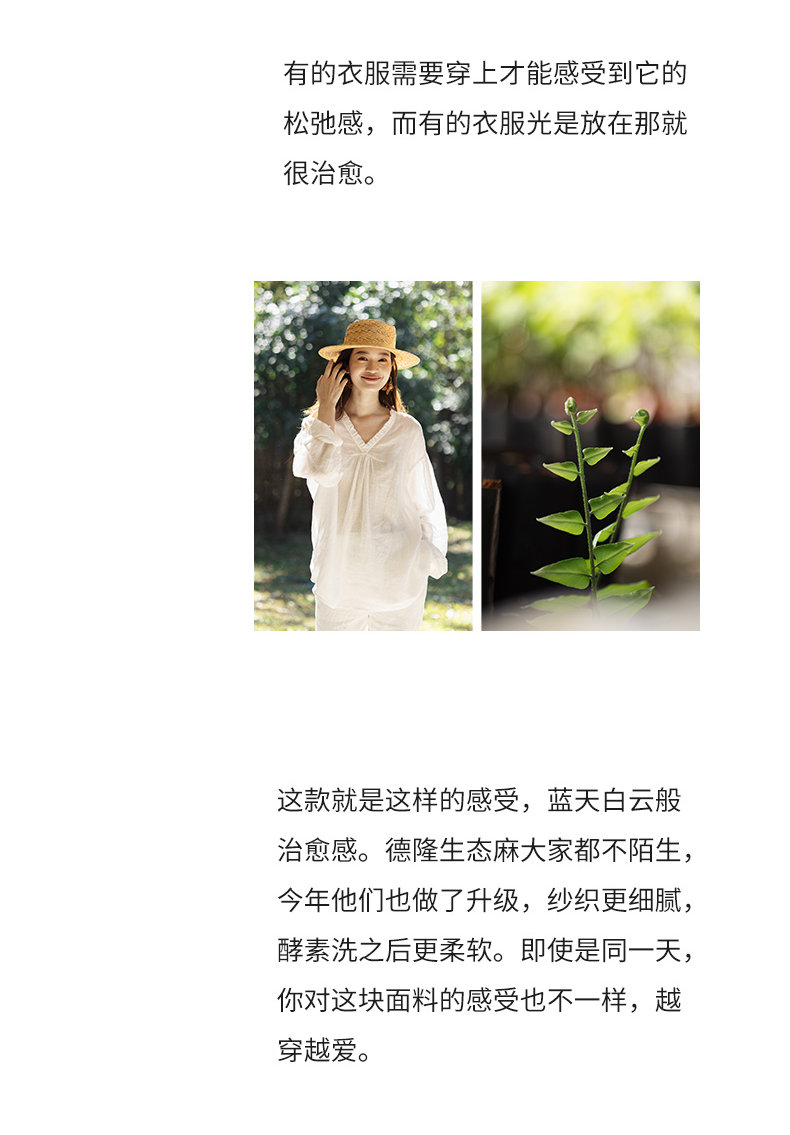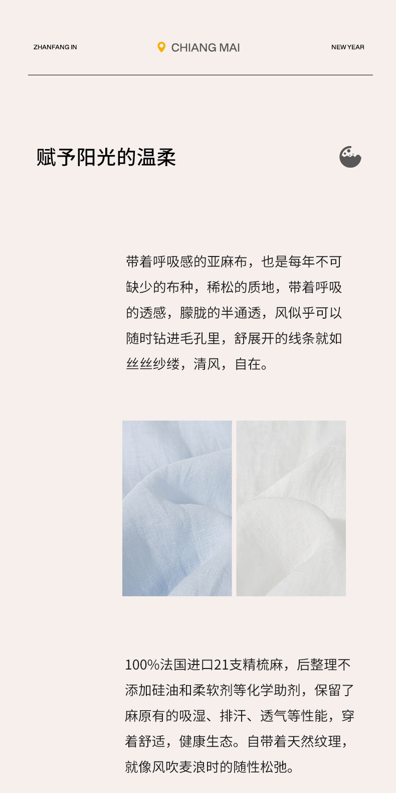 以天然亚麻为载体,融合热烈色彩与自在剪裁为身在城市、心怀远方的女性提供兼具美学与舒适的旅行着装