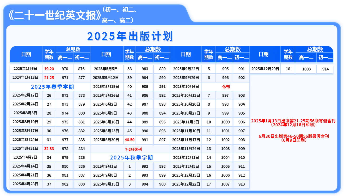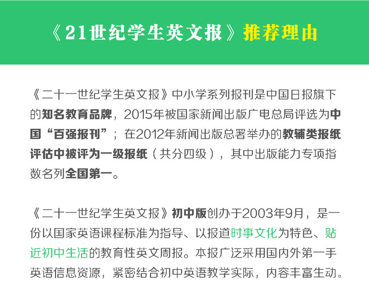【订阅】21世纪英语报(小学+中学)年刊共40/50期,默认下单当月起订(可备注起订月份和年级)