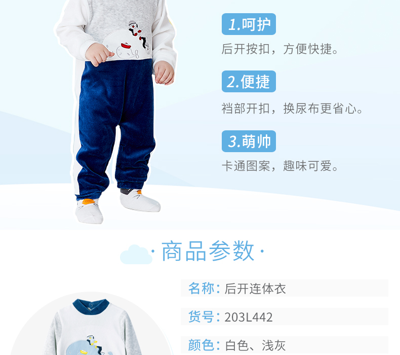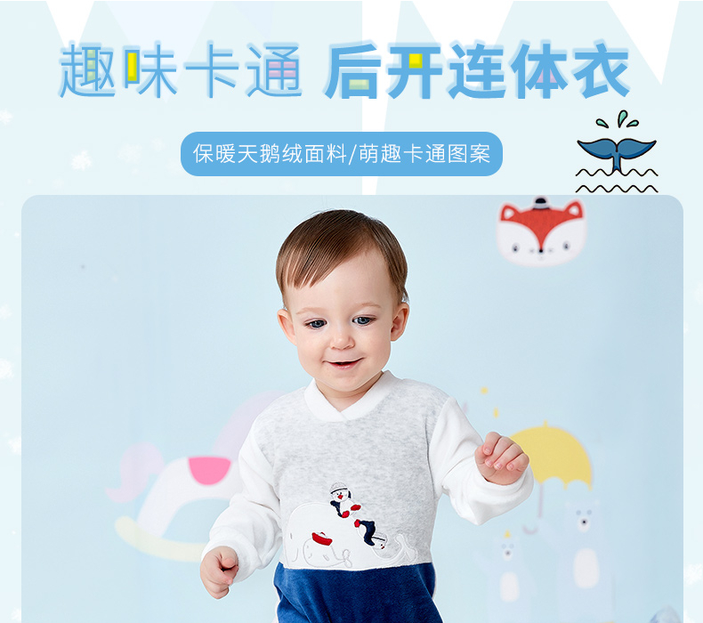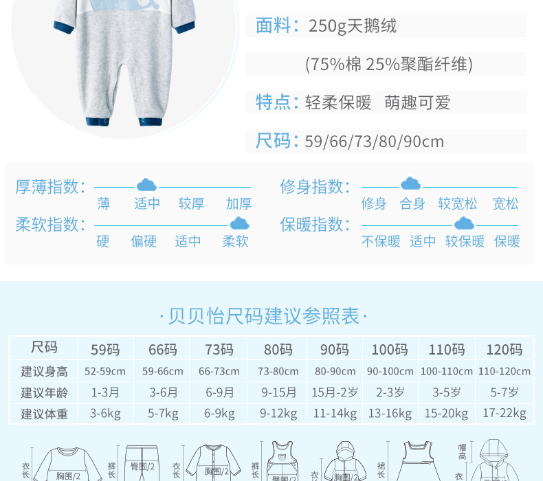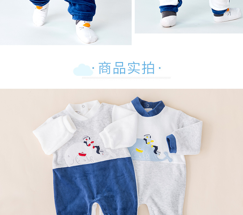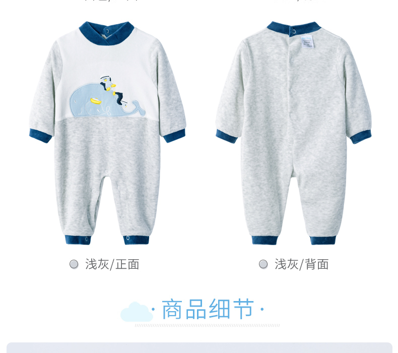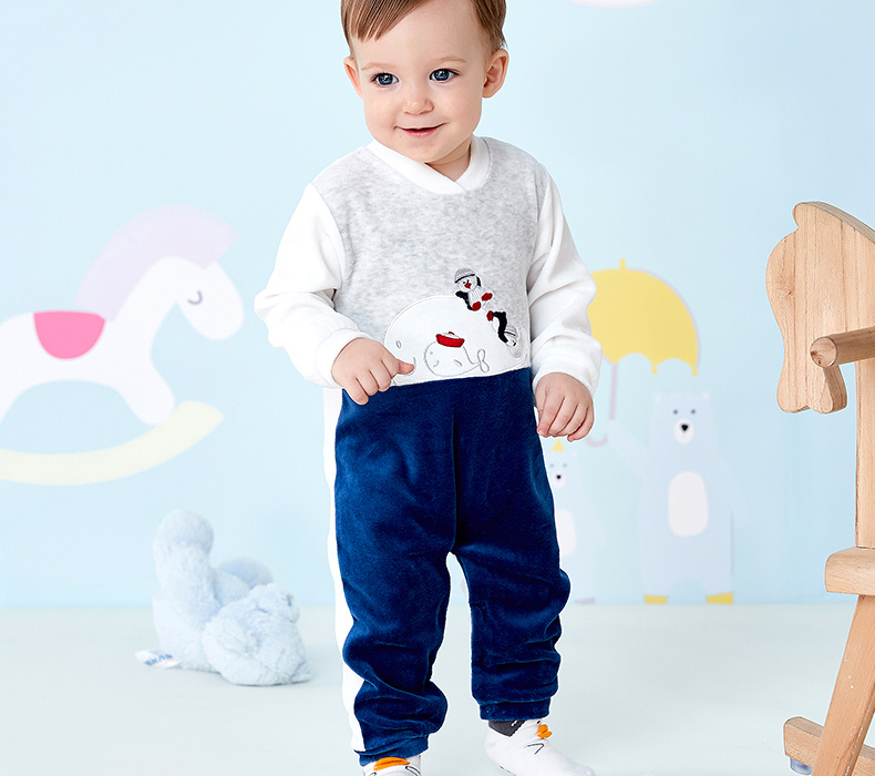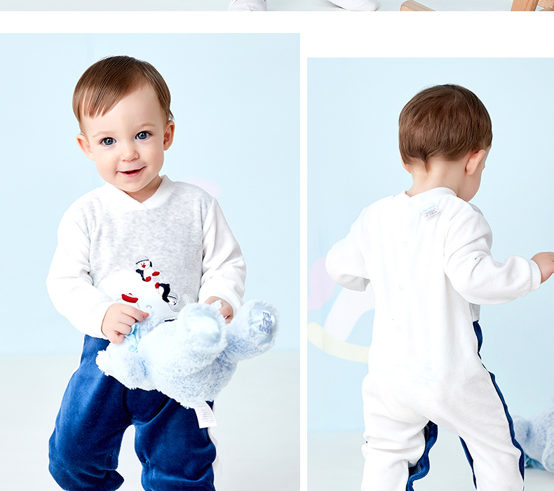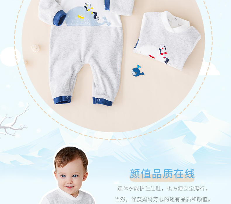 贝贝怡婴幼儿男童保暖洋气连身衣哈衣爬服连体衣
