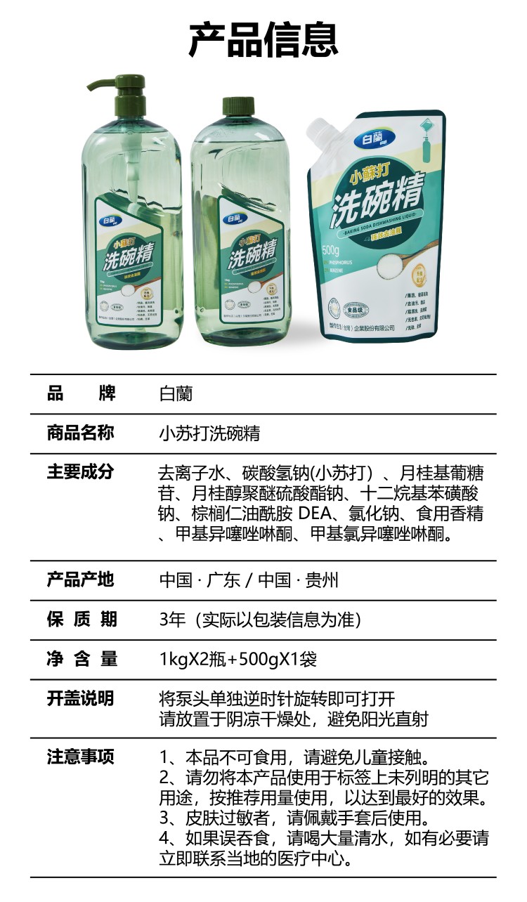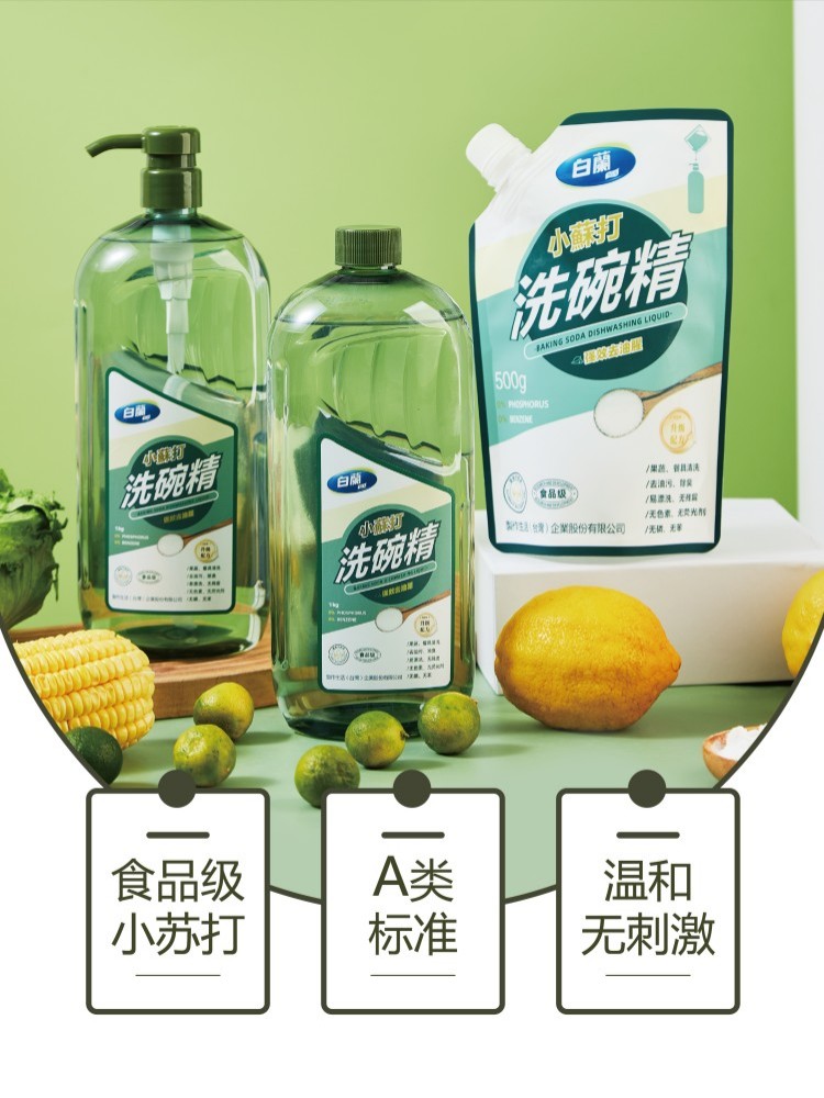 【山姆同款 5斤超值装】台湾白蘭小蘇打洗洁精 升级配方 食品级果蔬餐具白兰洗碗精去油天然浓缩