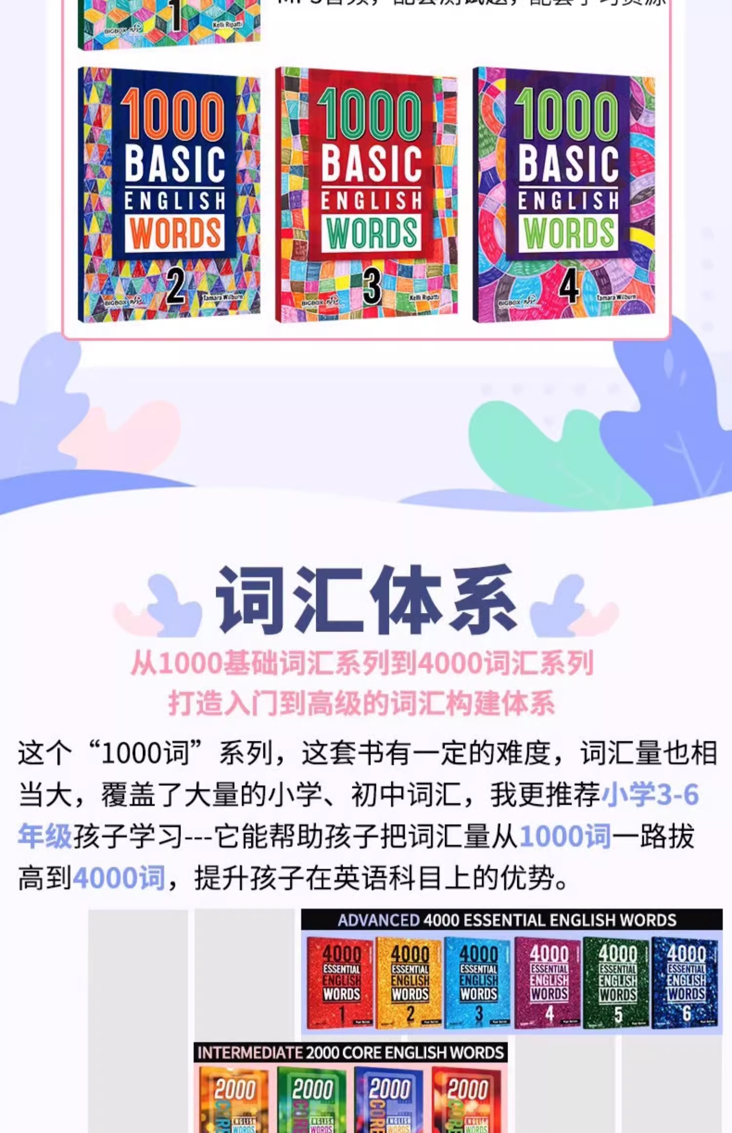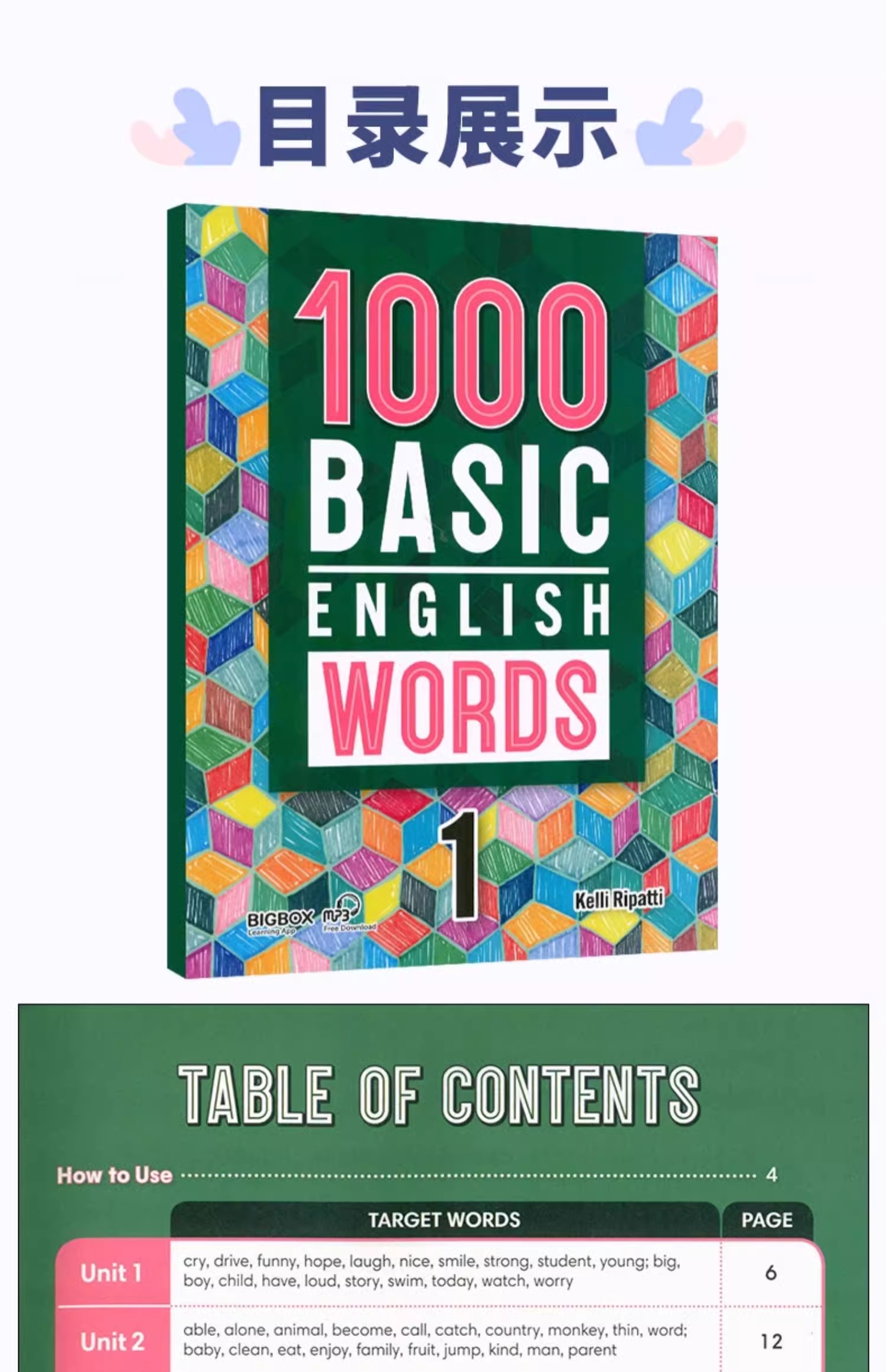 【书、书+AI课】原版 1000Basic English Words 1-4级 小学英语核心词汇1000词