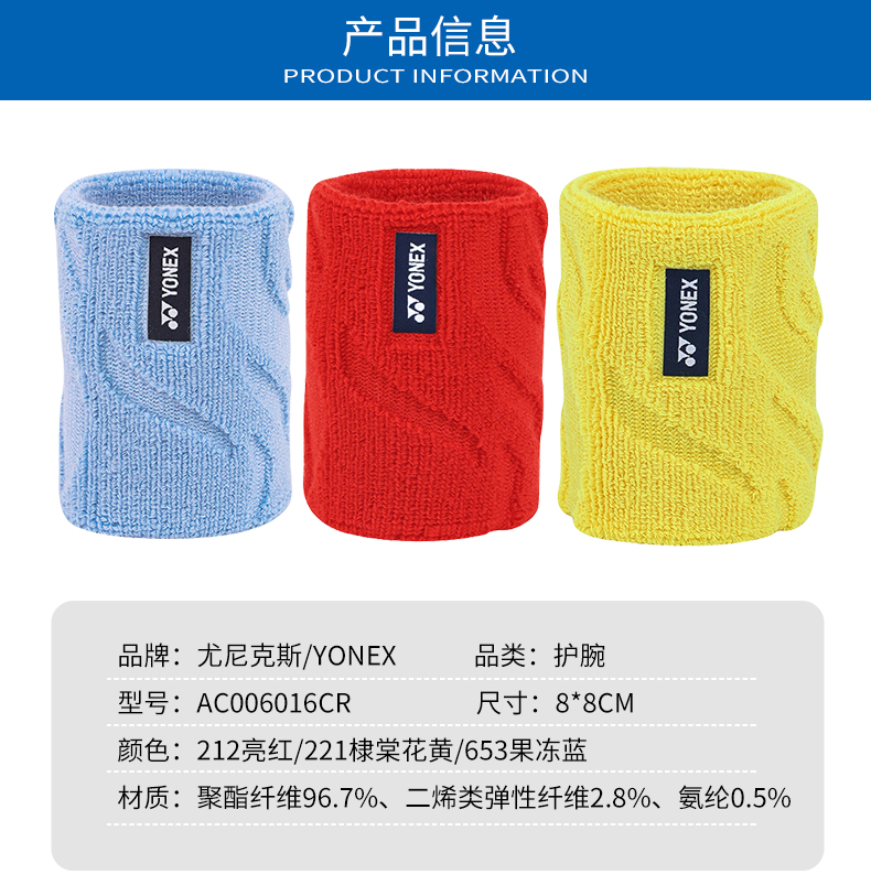 YONEX尤尼克斯羽毛球运动护腕加压吸汗健身运动护腕AC006016CR