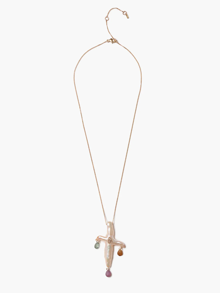 订购12周到|Chan Luu-14K-十字架 淡水珍珠 多色蓝宝石 吊坠 项链[美国设计师]