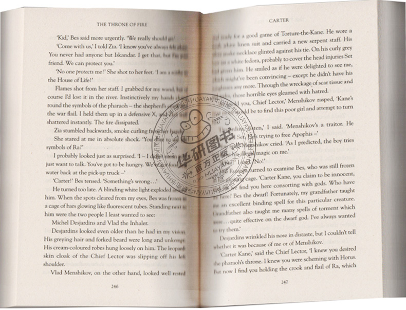 2. The Kane Chronicles Book 2: The Throne of Fire《埃及守护神系列2:凯恩与烈焰王座》 3. The Kane Chronicles Book 3: The Serpent's Shadow《埃及守护神系列3:凯恩与蛇神暗影》