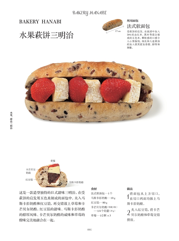 水果、甜品三明治168 草莓搅打奶油三明治 小份Sandwich amp; Co.169 香蕉和马斯卡彭奶酪三明治 小份Sandwich amp; Co.170 严格素食主义水果三明治MORETHAN BAKERY171 严格素食主义ABamp;J 三明治MORETHAN BAKERY172 有机香蕉、bocchi 花生酱和意大利乳清奶酪三明治 CICOUTE BAKERY173 小颗草莓和bocchi 花生酱开放式三明治 CICOUTE BAKERY174 草莓和生奶酪三明治 BEAVER BREAD175 濑户香和大吉岭茶三明治BEAVER BREAD176 提拉米苏贝果三明治 MORETHAN BAKERY177 石板街巧克力蜜瓜包三明治 gruppetto178 自制能多益、鲜奶油、草莓三明治Chapeau de paille179 罪恶三明治 San jū san180 水果萩饼三明治 BAKERY HANABI181 红豆馅黄油三明治 BEAVER BREAD182 法式水果三明治 BAKERY HANABI183 自制冰淇淋三明治 saint de gourmand184 蓝纹奶酪和蜂蜜核桃仁三明治Chapeau de paille185 糖煮苹果、红葡萄酒煮无花果、戈贡佐拉奶酪和香草沙拉佛卡恰三明治 Bakery Tick Tack