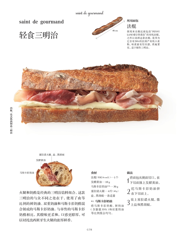 内脏、法式熟肉制品三明治063 越南三明治 amp; TAKANO PAIN064 肝酱三明治 CICOUTE BAKERY066 石榴鸡肝和松仁三明治 Craft Sandwich068 熟肉酱三明治 saint de gourmand070 熟肉酱和烤蔬菜三明治MORETHAN BAKERY072 鹅肝肉冻和美国樱桃三明治Blanc agrave; la maison074 黑布丁和白桃三明治 Blanc agrave; la maison076 布里奶酪和自制火腿三明治Chapeau de paille077 自制火腿和孔泰奶酪三明治Chapeau de paille078 轻食三明治 saint de gourmand079 艺人工匠三明治 Sandwich amp; Co.080 火腿、煎西葫芦、布拉塔奶酪和开心果酱三明治 Craft Sandwich081 生火腿、烤葡萄和意大利乳清奶酪三明治 Craft Sandwich082 自制肉酱、生火腿、蔬菜调料法棍三明治 Pain KARATO Boulangerie Cafe084 假日米兰三明治 amp; TAKANO PAIN085 熏牛肉康帕纽三明治 amp; TAKANO PAIN086 西班牙三明治 pain stock087 厚切培根三明治 pain stock088 自制培根和菠菜蛋饼橄榄酱三明治 THE ROOTS neighborhood bakery090 自制栗子猪培根、青苹果和青柠三明治 San jū san