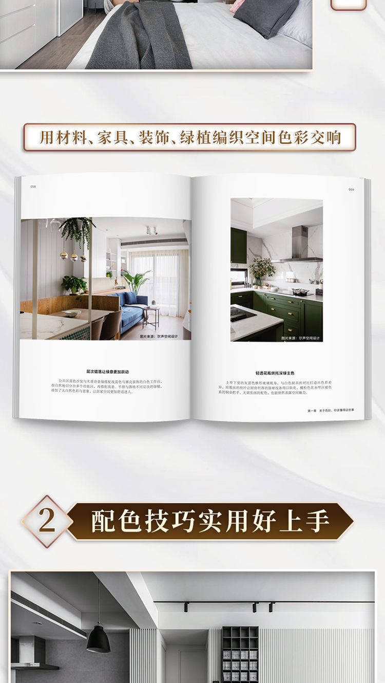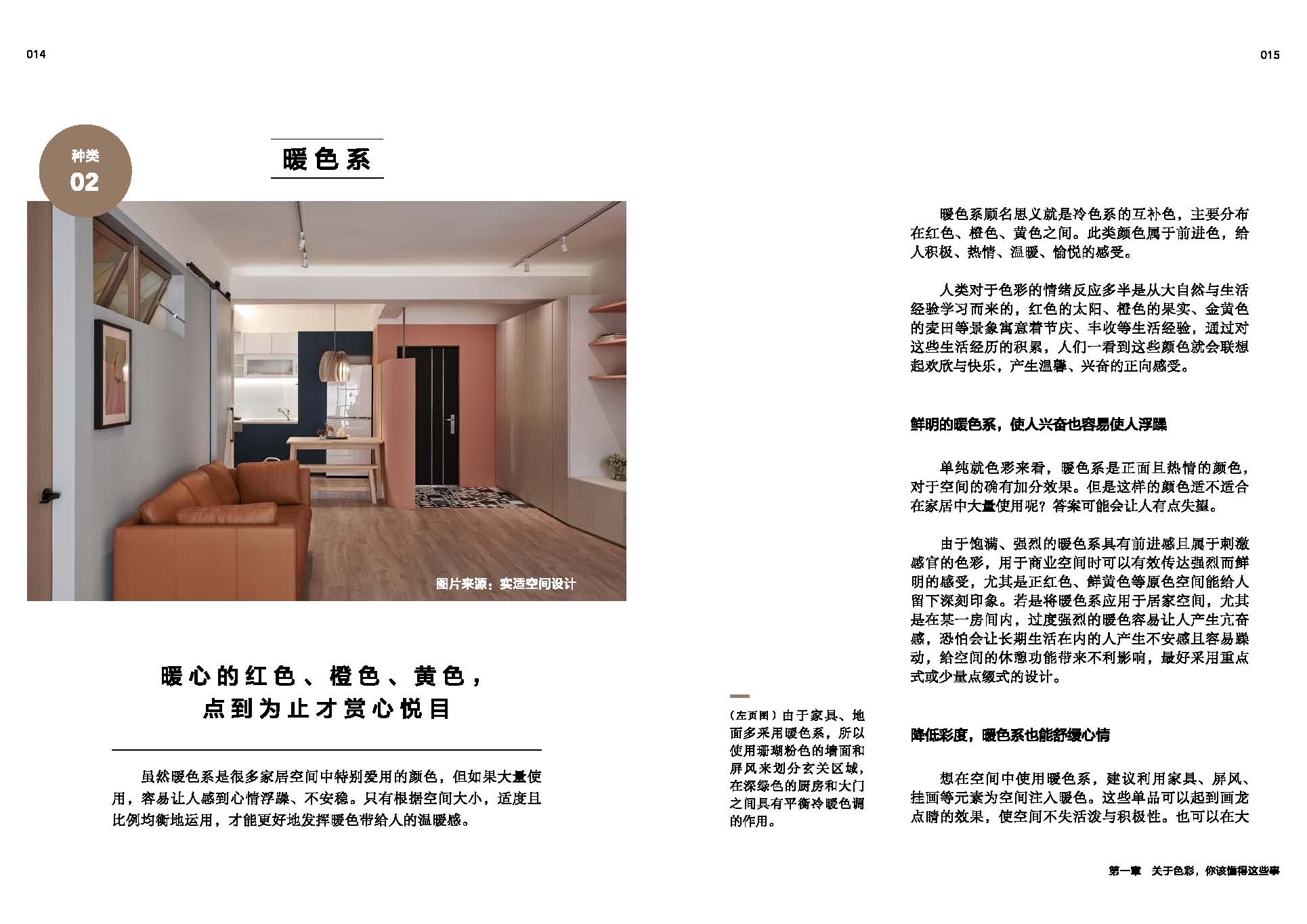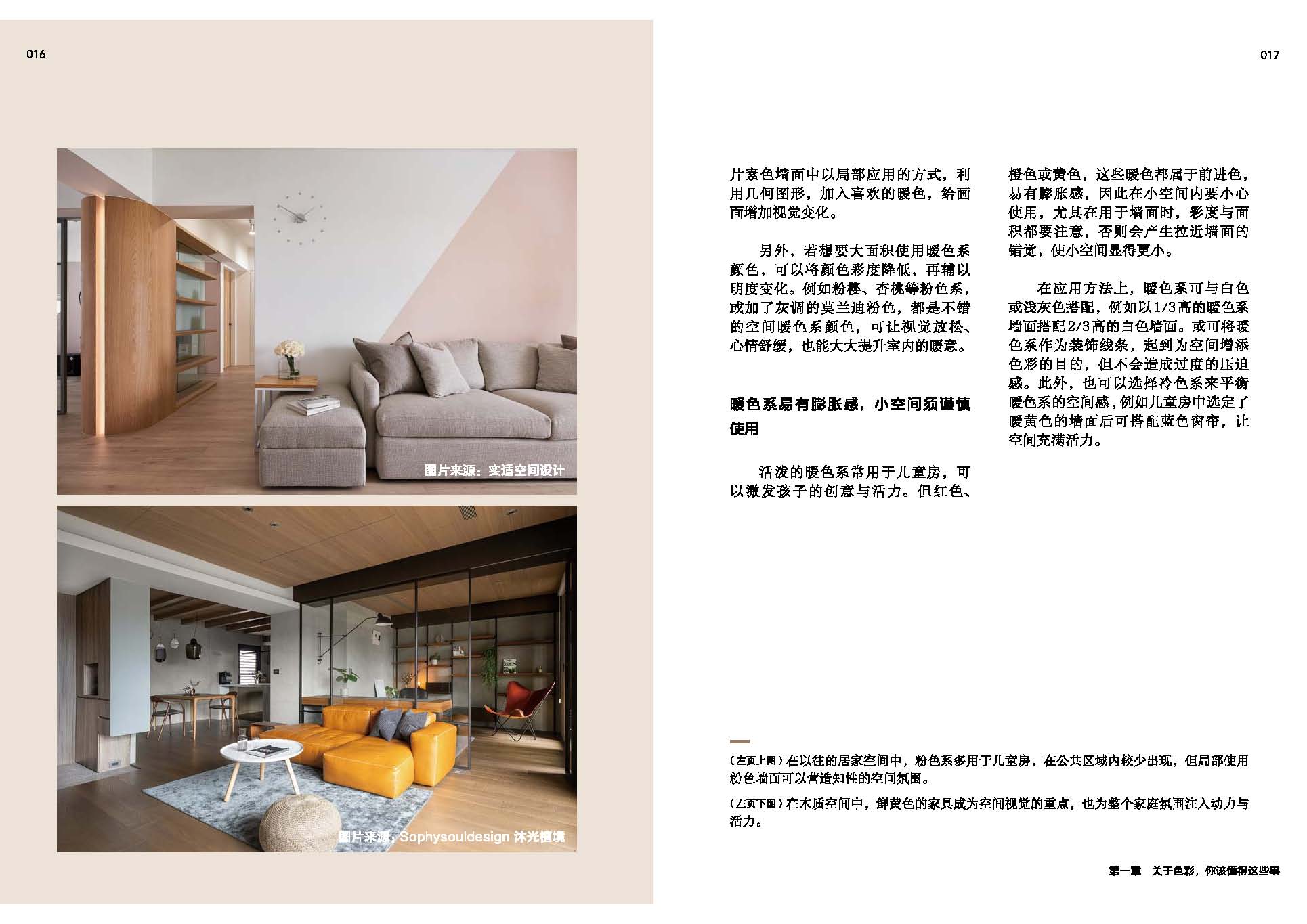 二章:家的配色,你可以这样做。实用配色心法与技巧。这是本书的精华所在。本章提供了坚实的逻辑框架与10个易上手的实用技巧从不会出错的三色比例,到生动活泼的互补色搭配;从和谐的单色渐变,到利用光线与材质为黑白灰赋予层次感。让你在感性与理性之间找到平衡,掌握配色的主动权。