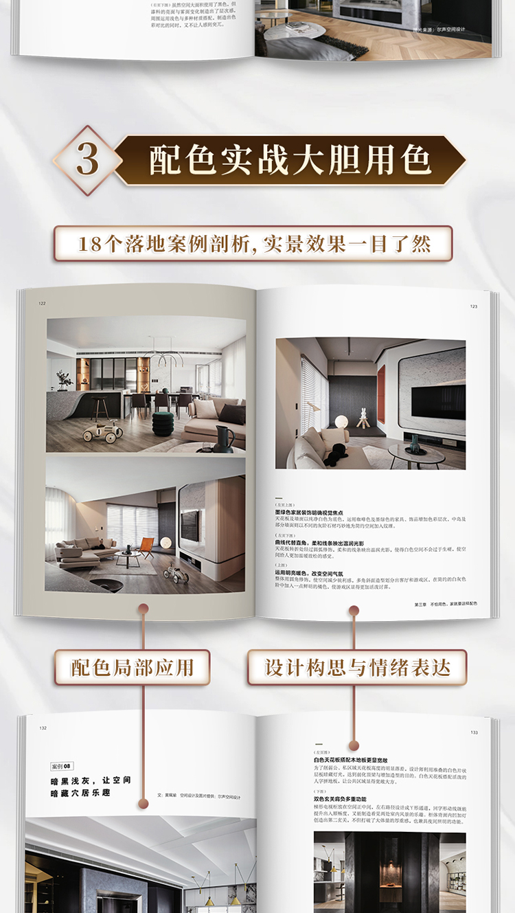 第三章:18个真实家居配色案例深度解析。理论终须付诸实践。本章汇集了18个风格迥异的真实家居案例,从清新的鼠尾草绿美宅,到质感奢华的胭脂红与石墨黑搭配;从纯粹的50度灰空间,到充满童趣的多彩之家每一个案例都是一次生动的配色教学,详细剖析其色彩选择、比例调配与达成的空间情绪,为你提供灵感与可复制的实战经验。