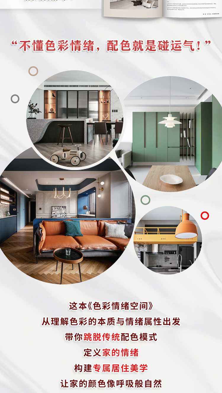 《色彩情绪空间》为您提供了清晰易懂的配色逻辑与十大实用技巧。从不会出错的三色比例,到生动活泼的互补色搭配;从和谐的单色渐变,到利用光线与材质层次感无论您是配色新手还是希望进阶,都能在此找到灵感与信心,让色彩回归居住本质,表达家的个性。理论服务于实践。《色彩情绪空间》精心收录了18个真实家居配色案例。从活泼多彩的亲子空间,到简约的现代风格每一个案例都生动诠释了如何将色彩理论转化为触手可及的生活场景。