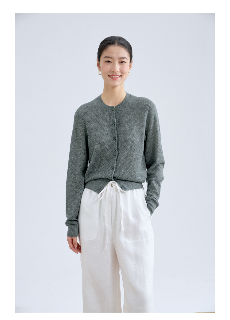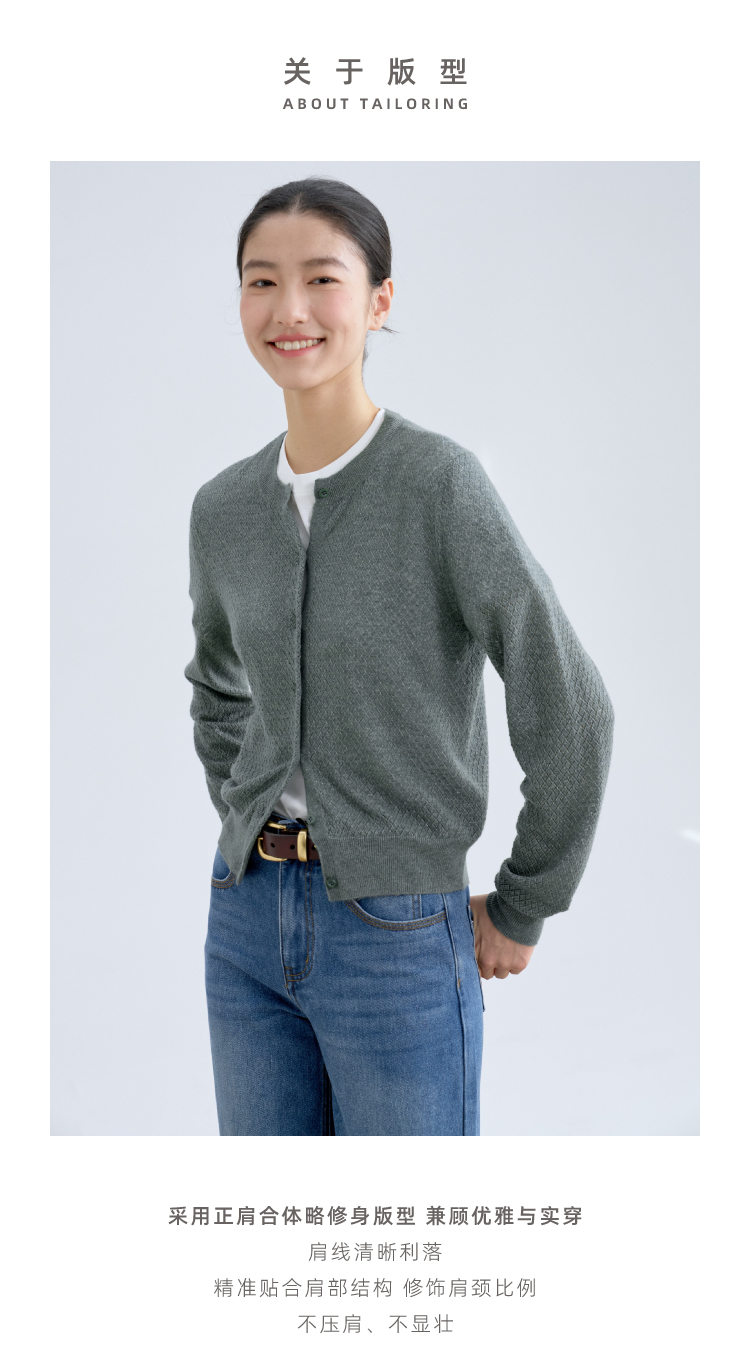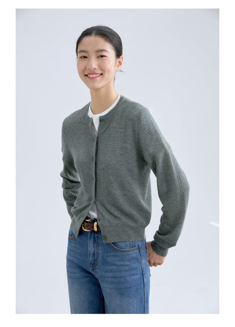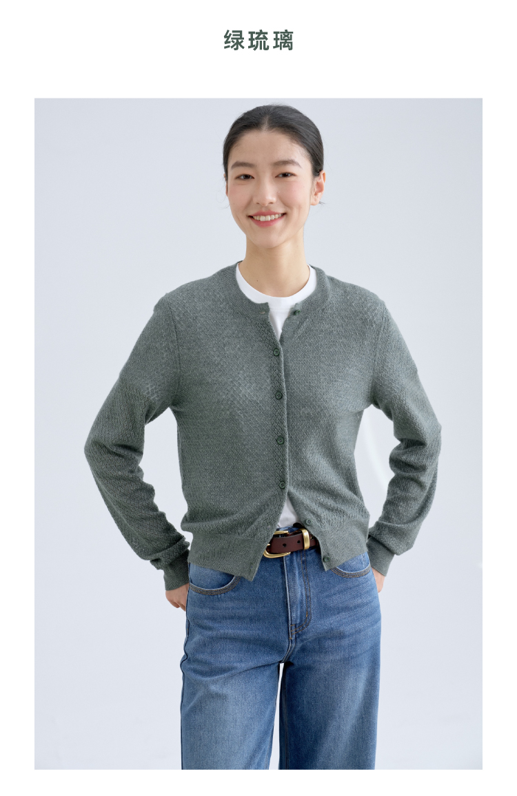 绿琉璃·真丝羊绒羊毛圆领修身开衫