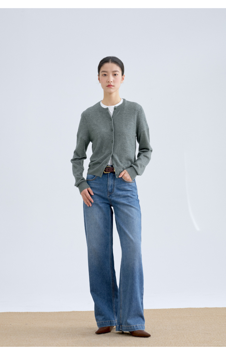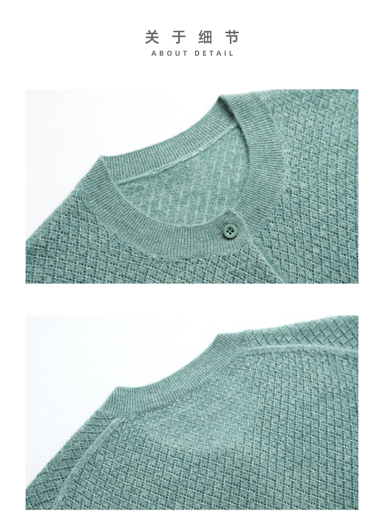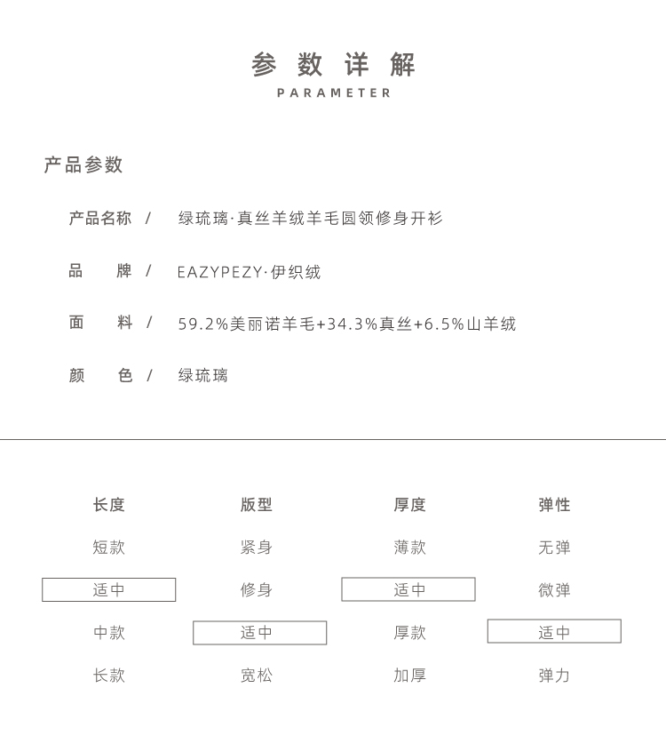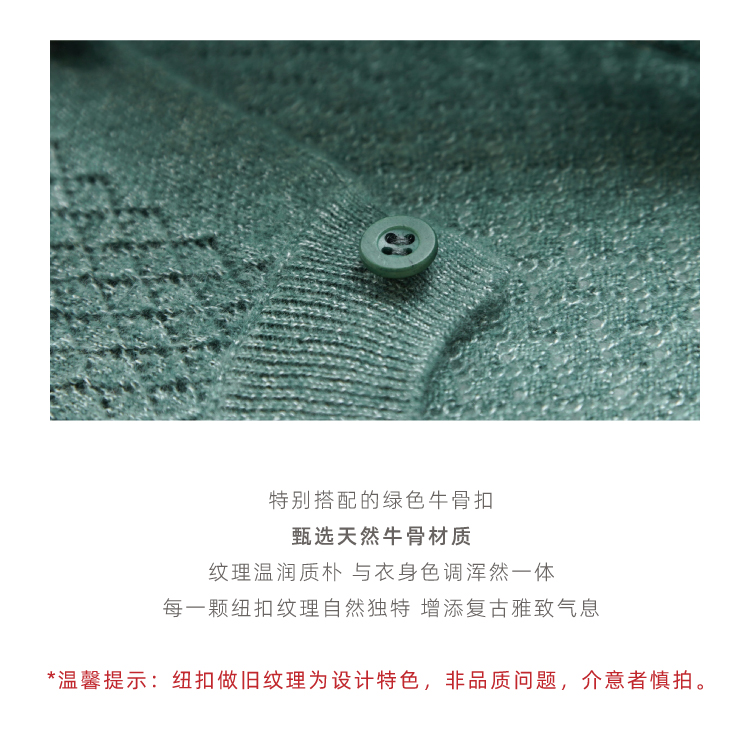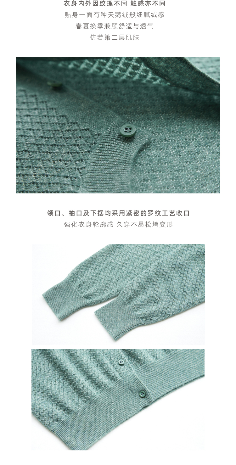 绿琉璃·真丝羊绒羊毛圆领修身开衫