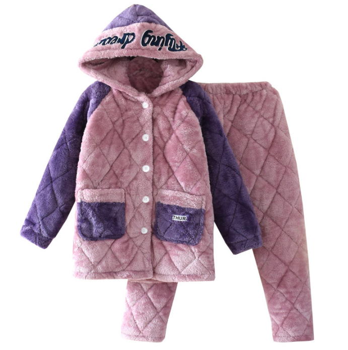 【服饰鞋包】秋冬季三层加厚珊瑚绒夹棉连帽家居服