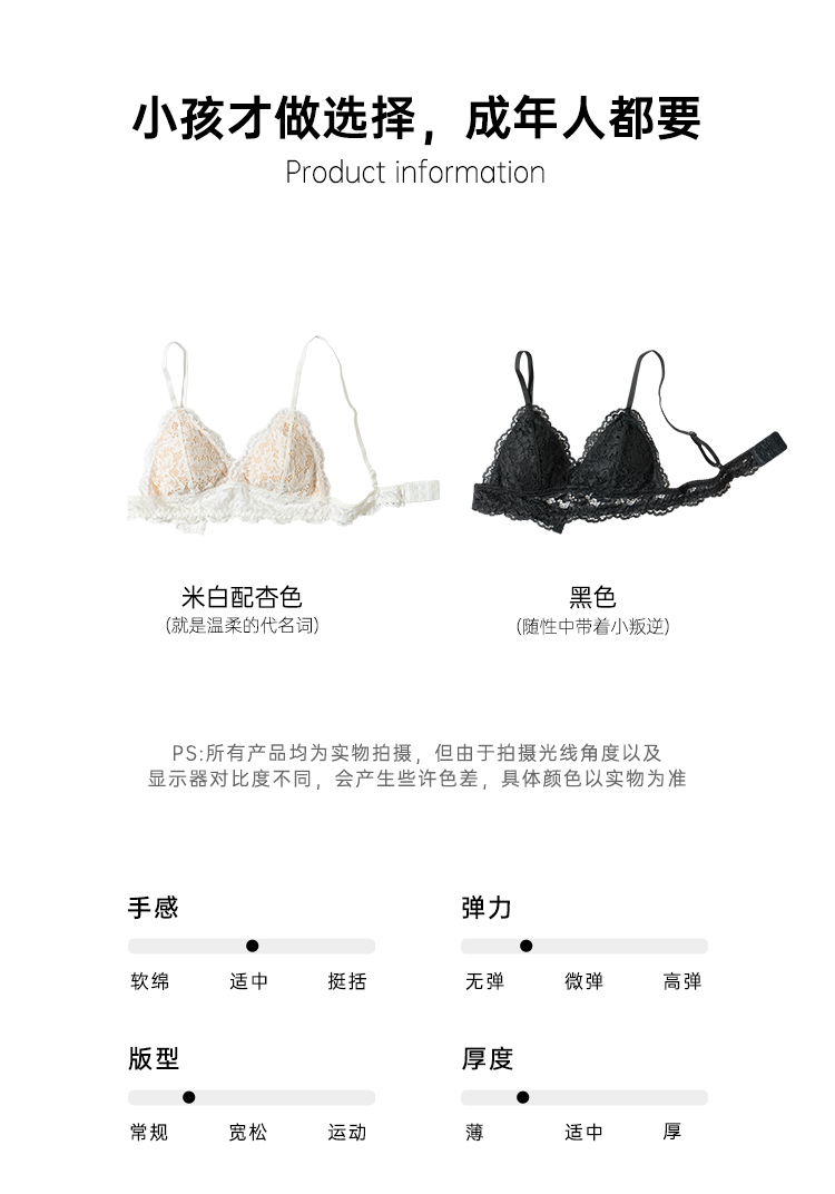 靴下物法式蕾丝三角杯内衣女春夏薄款无钢圈一体式文胸美背性感