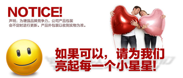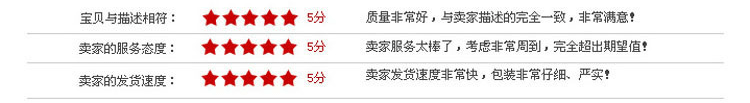 物流说明:1.付款后请务必通过旺旺留言或电话告知2.详细送货地址3.联系电话如手机,收件人姓名等4.如因地址不详,电话联系不上,收货地址偏僻等原因而造成延迟收货实属正常,责任在第三方货流,本方会积极为之协调,也请各位给予理解支持!5.请您在收到货物时当场检验货品,请注意检查外包装是否完好或者破损、折封痕迹,如果发现货物外包装损坏出现货物丢失或破损,您不用着急,首先您有权要求物流公司出示证明,您可以联系我们进行咨询相关的处理方式,我公司将负责向相关物流公司索赔。