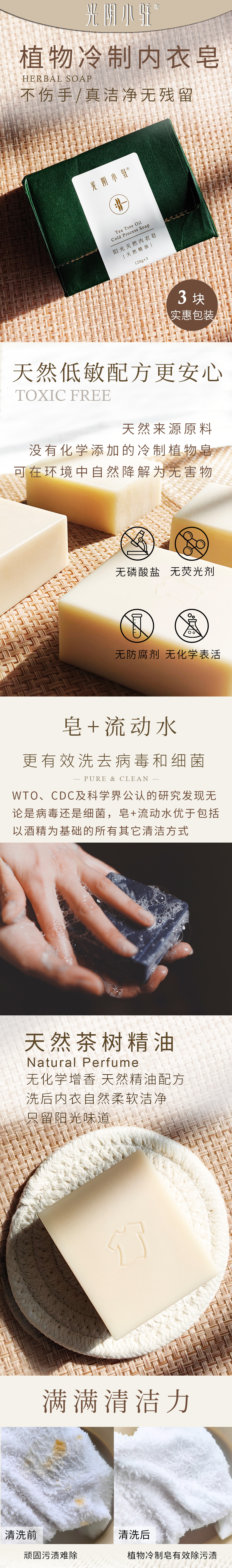 “光阴小驻”茶树精油内衣皂3块特惠装/植物油冷制/易冲洗无残留/去渍不伤手