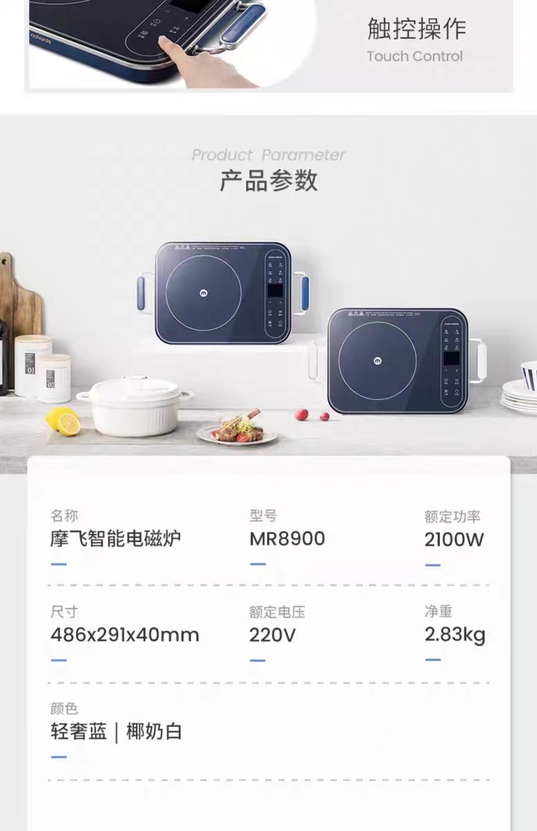 【春上新】10楼 摩飞 电磁炉MR8900(蓝色/白色) 吊牌价599元 活动价499元
