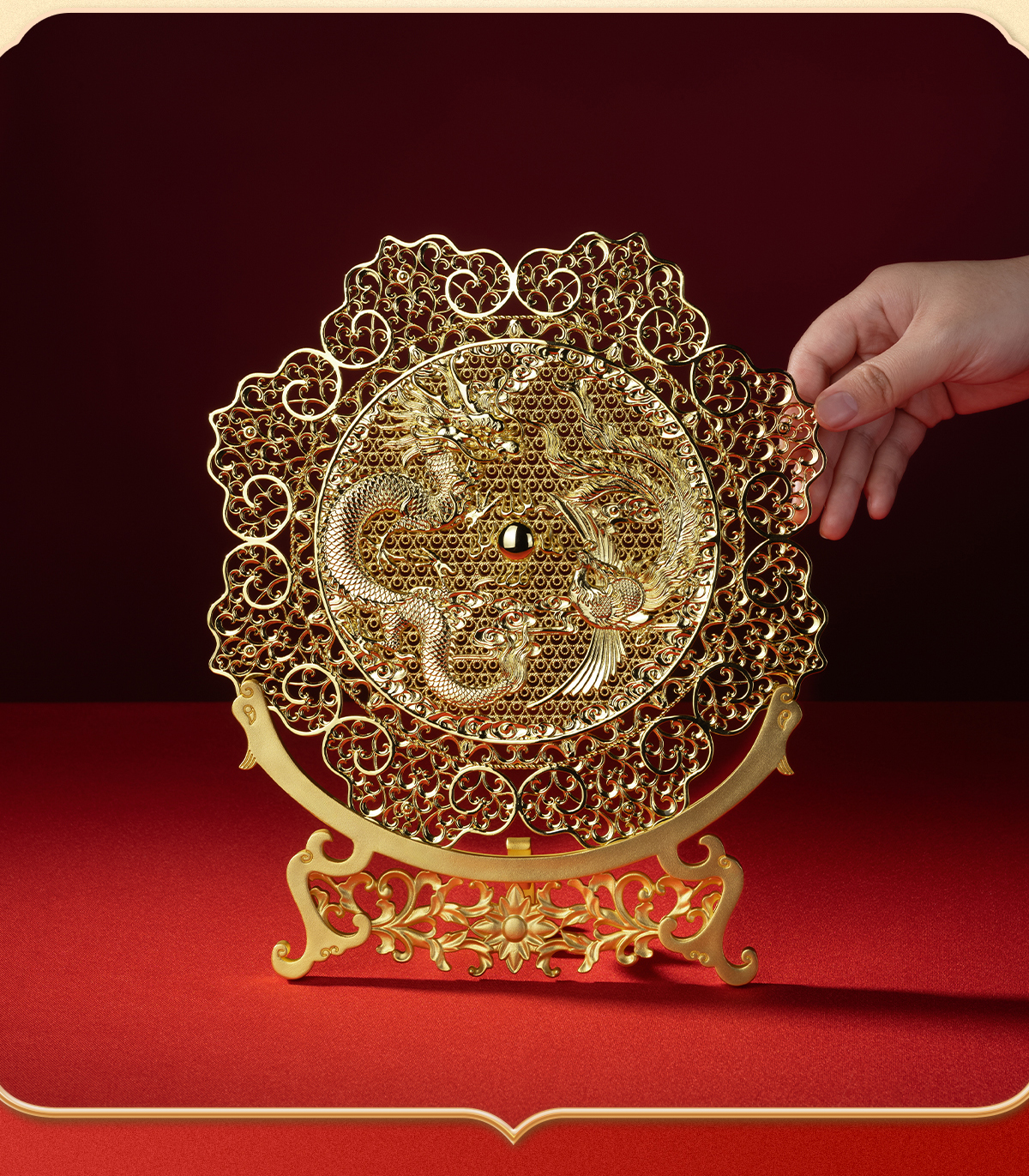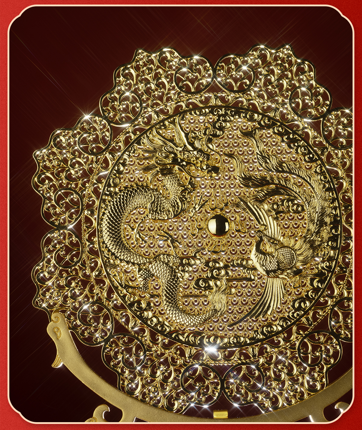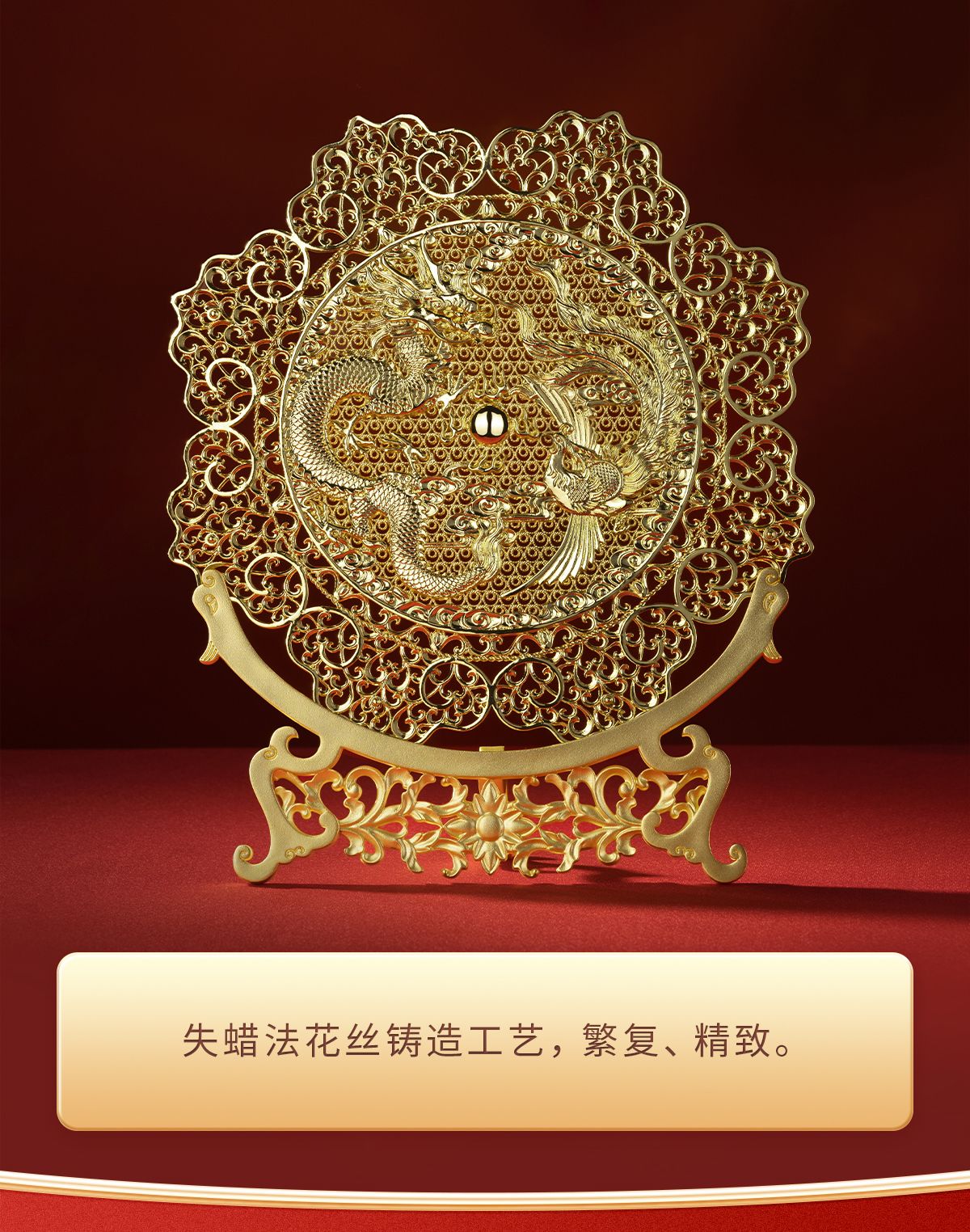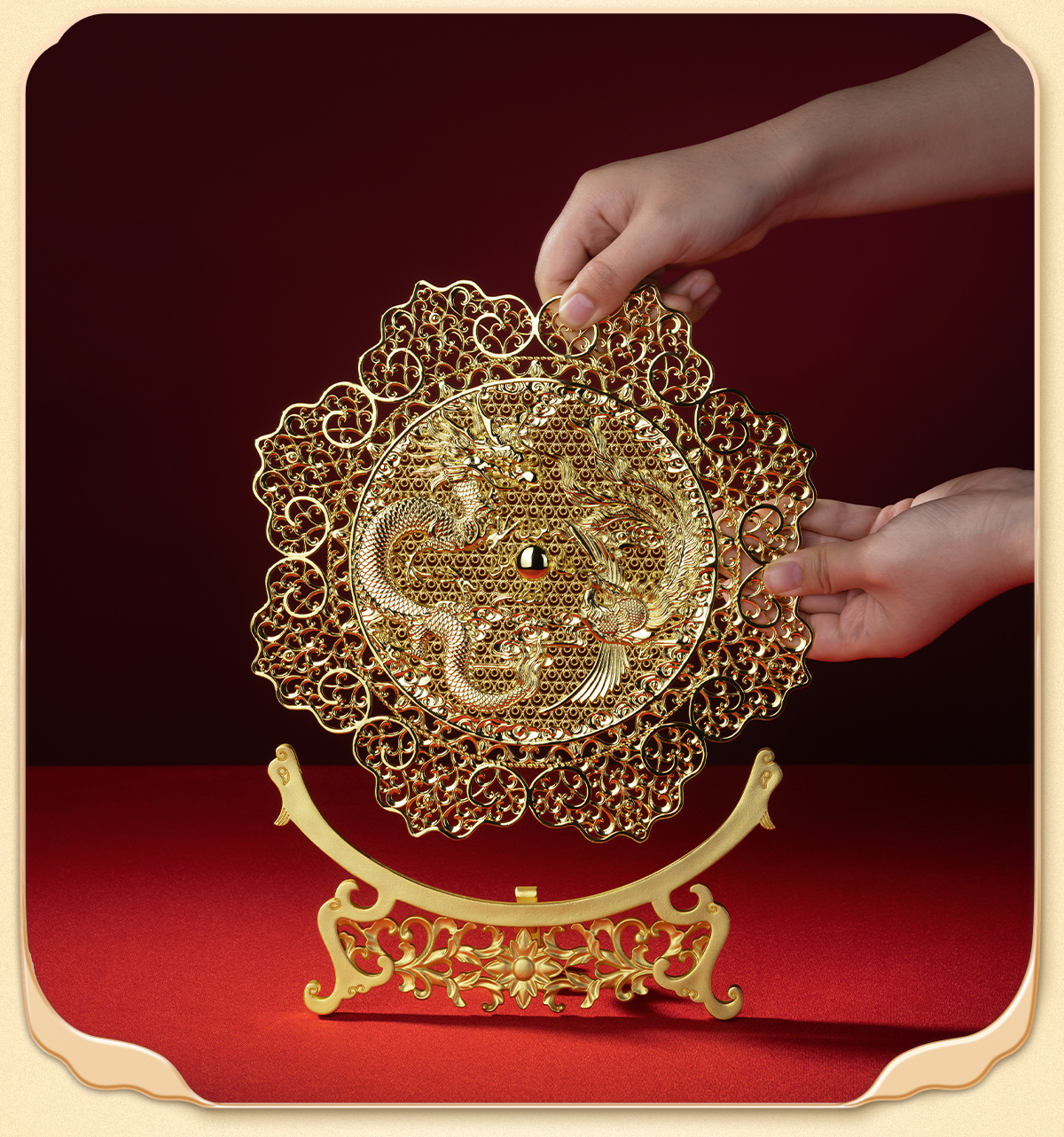 铜师傅《花丝龙凤盘》客厅桌面铜镜子摆件 家居装饰工艺品礼品