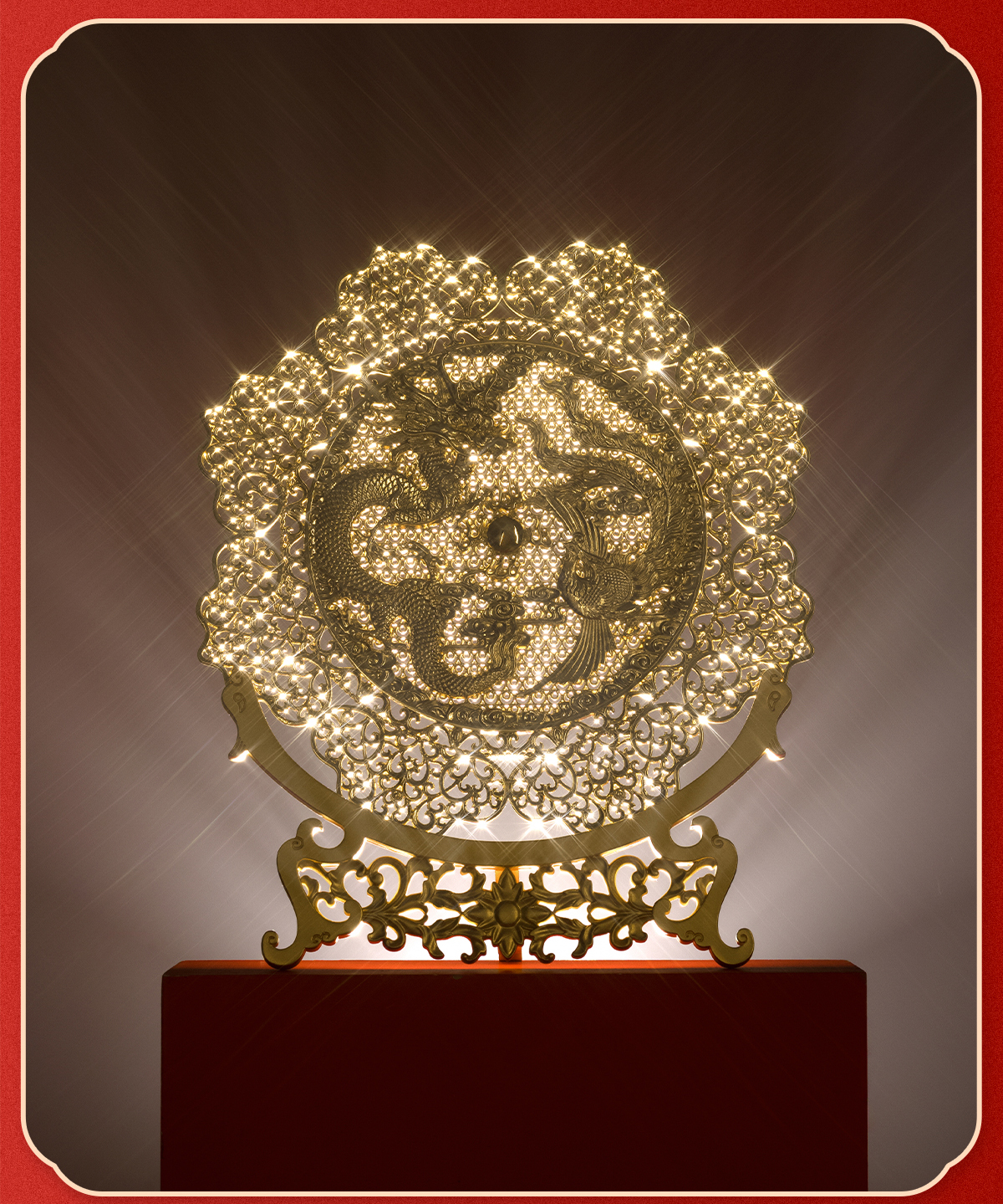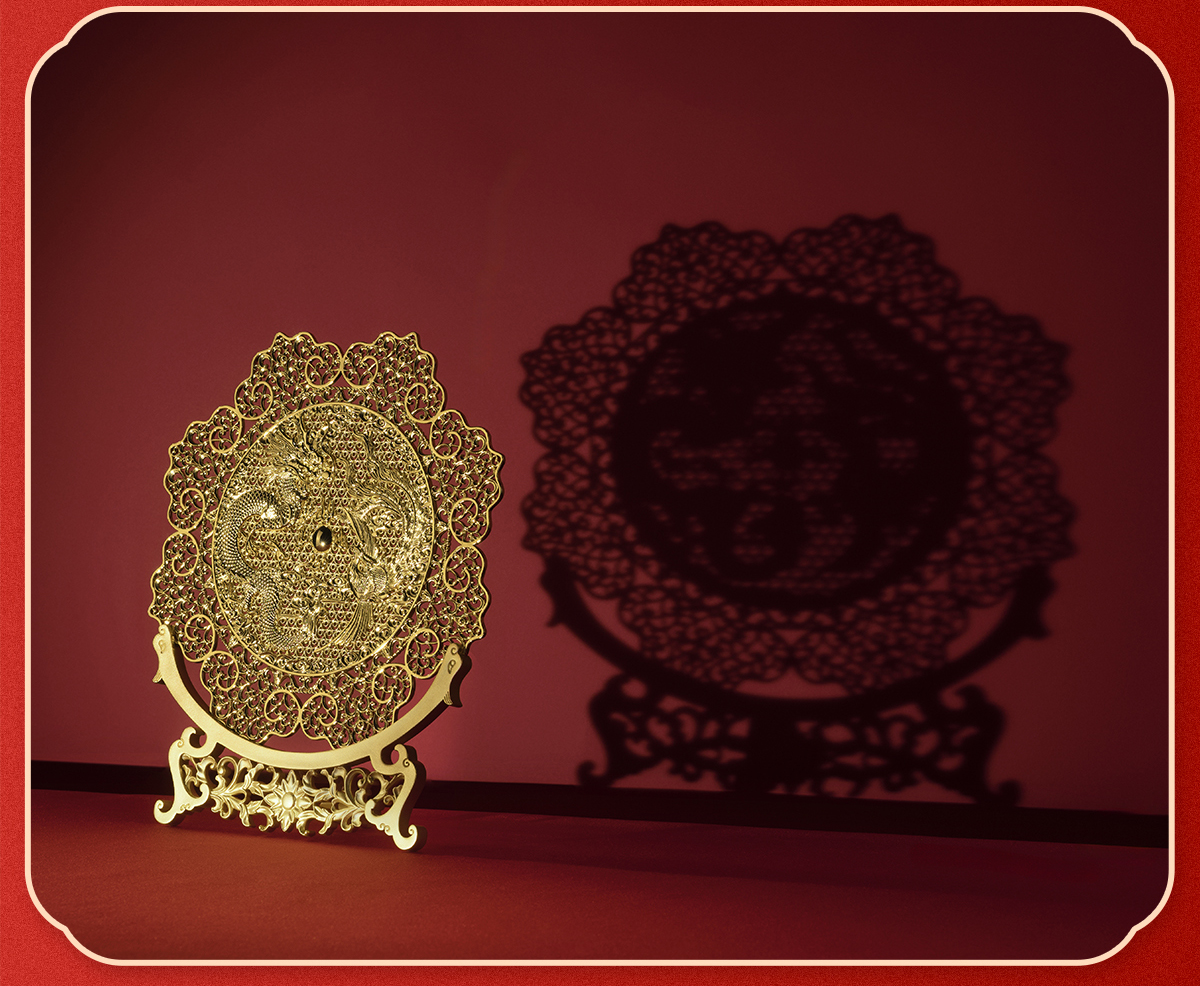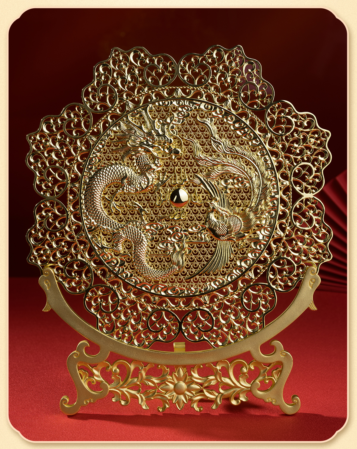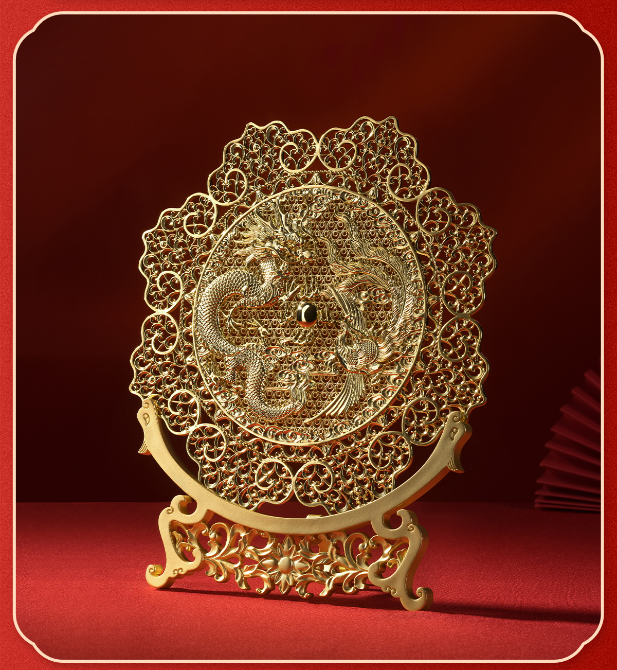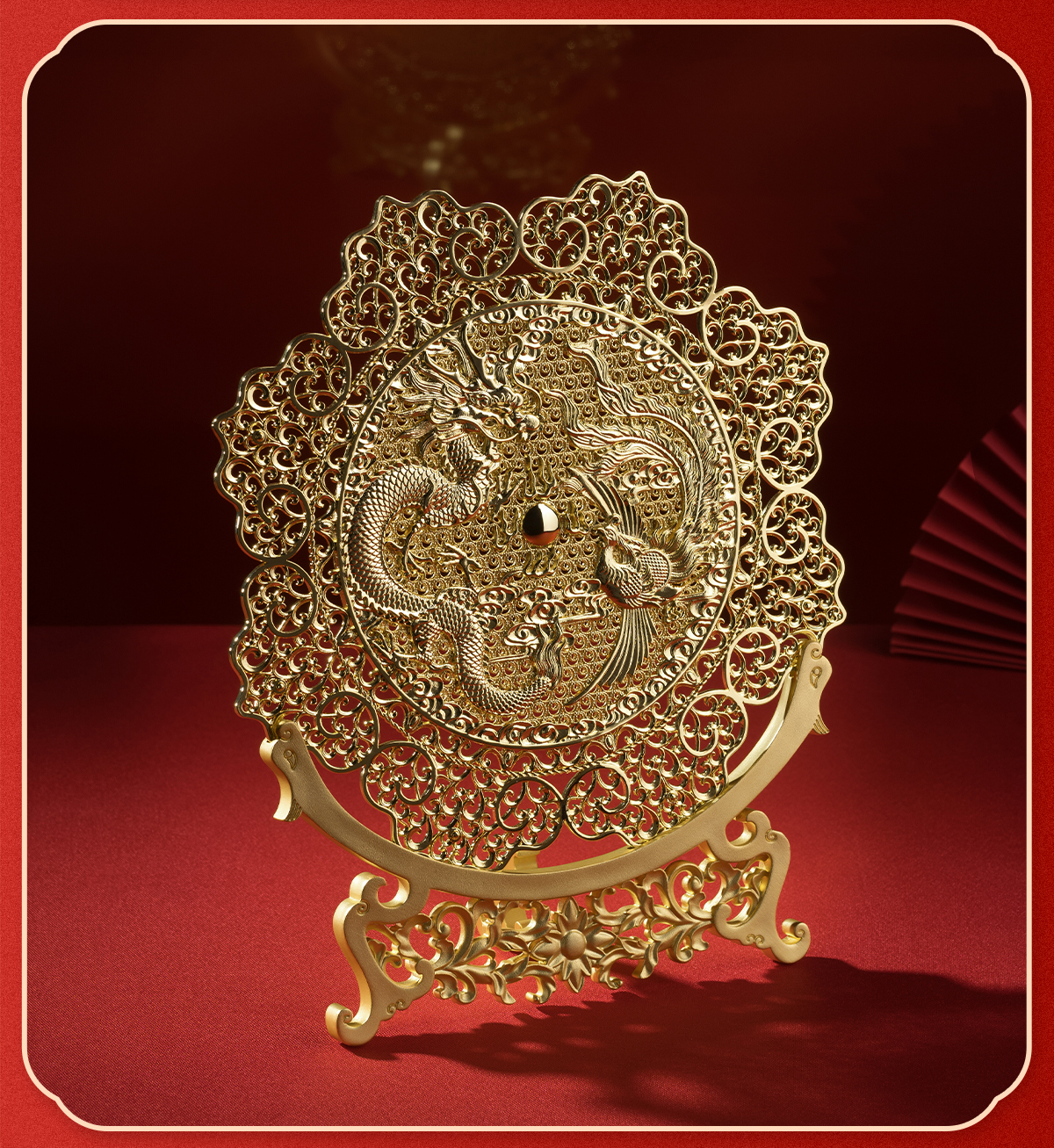 铜师傅《花丝龙凤盘》客厅桌面铜镜子摆件 家居装饰工艺品礼品