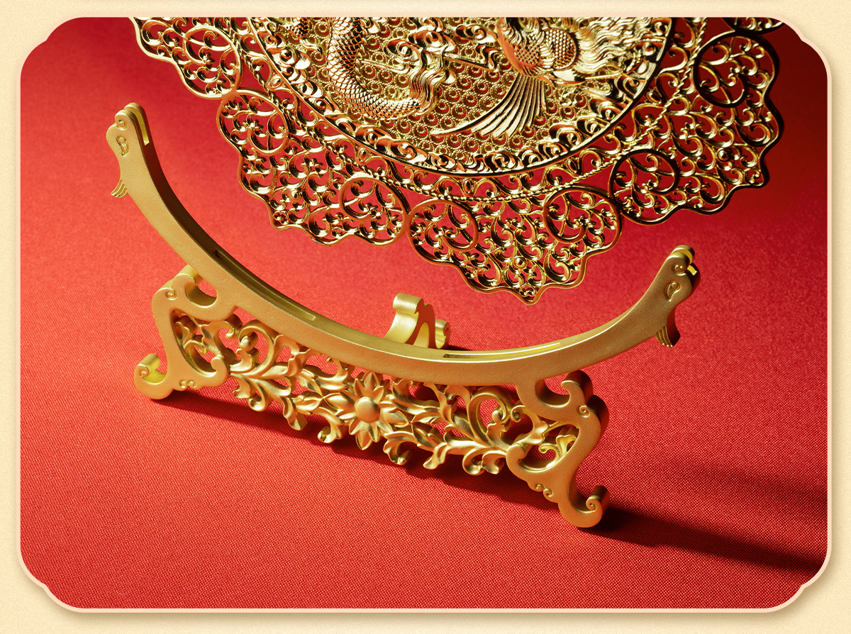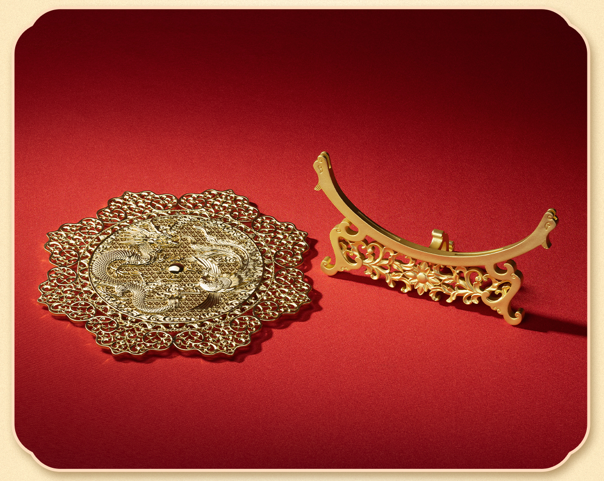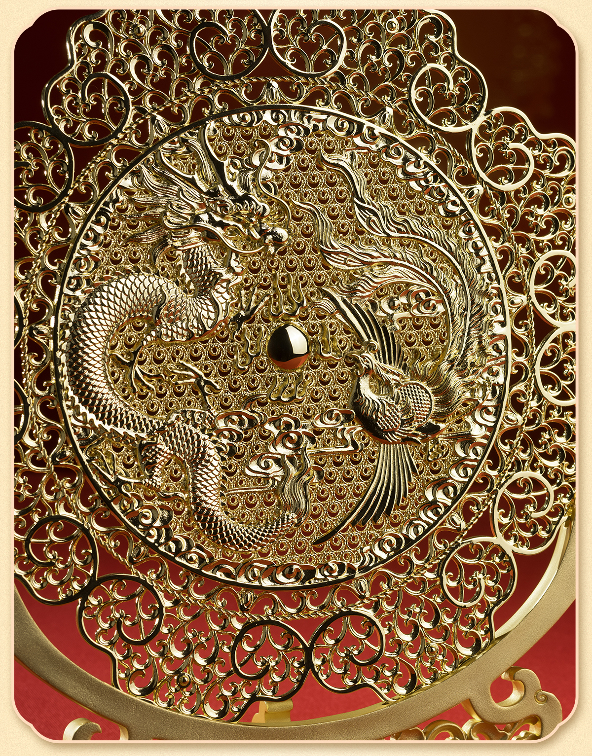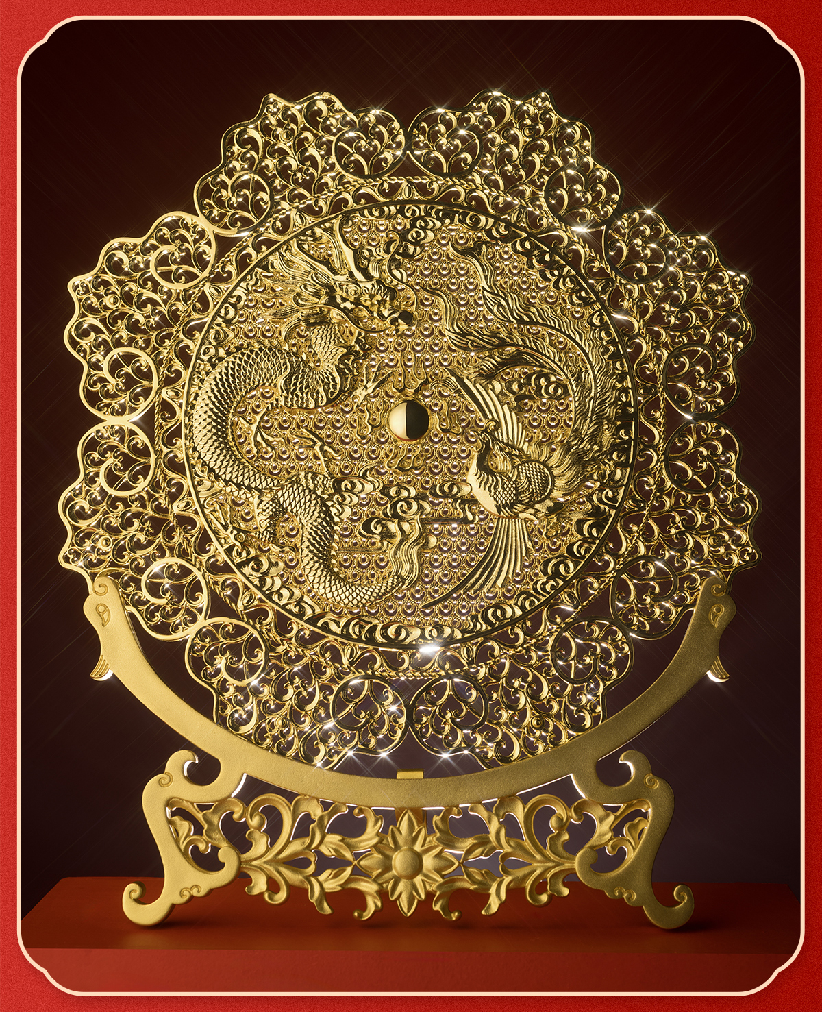 铜师傅《花丝龙凤盘》客厅桌面铜镜子摆件 家居装饰工艺品礼品