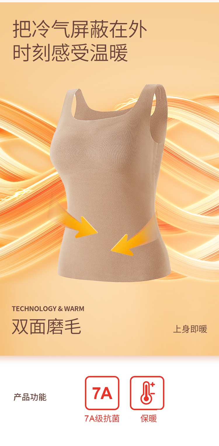 99任选3件【自带bra 7A抑菌 双面磨毛】花姿彤椰油云感保暖背心内衣文胸