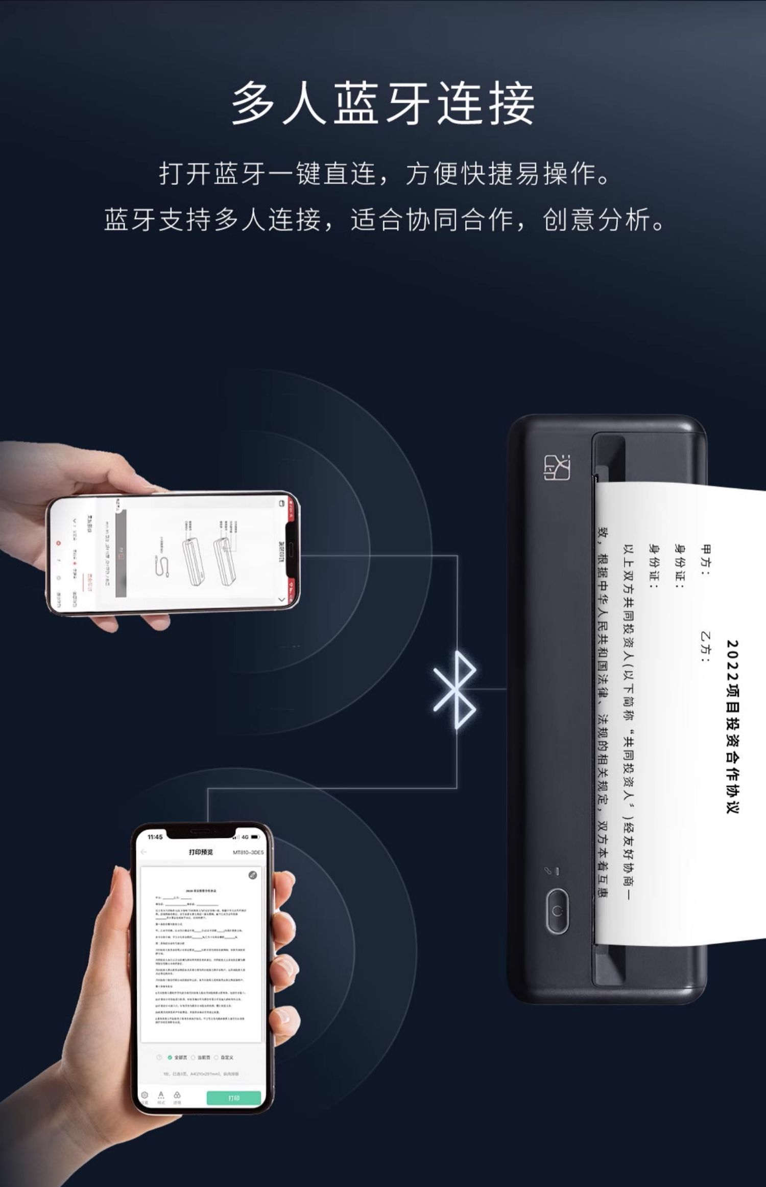 汉印MT880商务A4打印机 移动办公可连手机蓝牙便携式a4热敏小型家用无墨随身办公