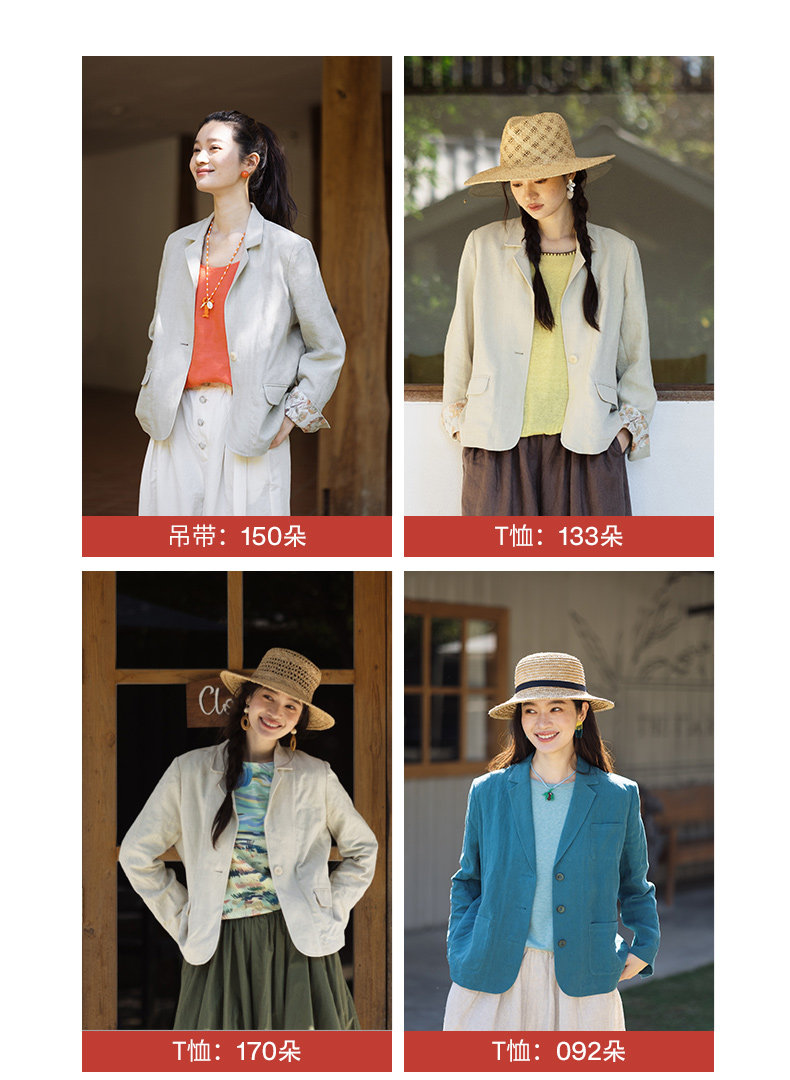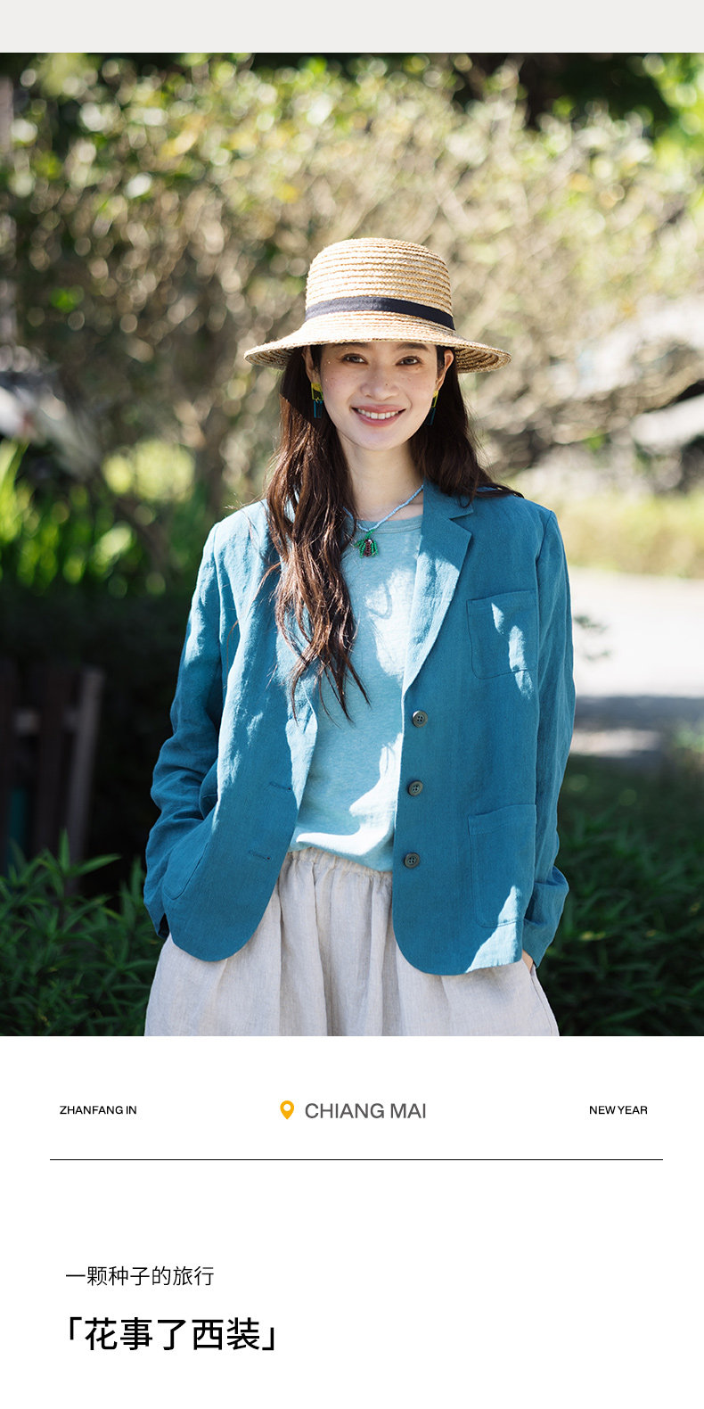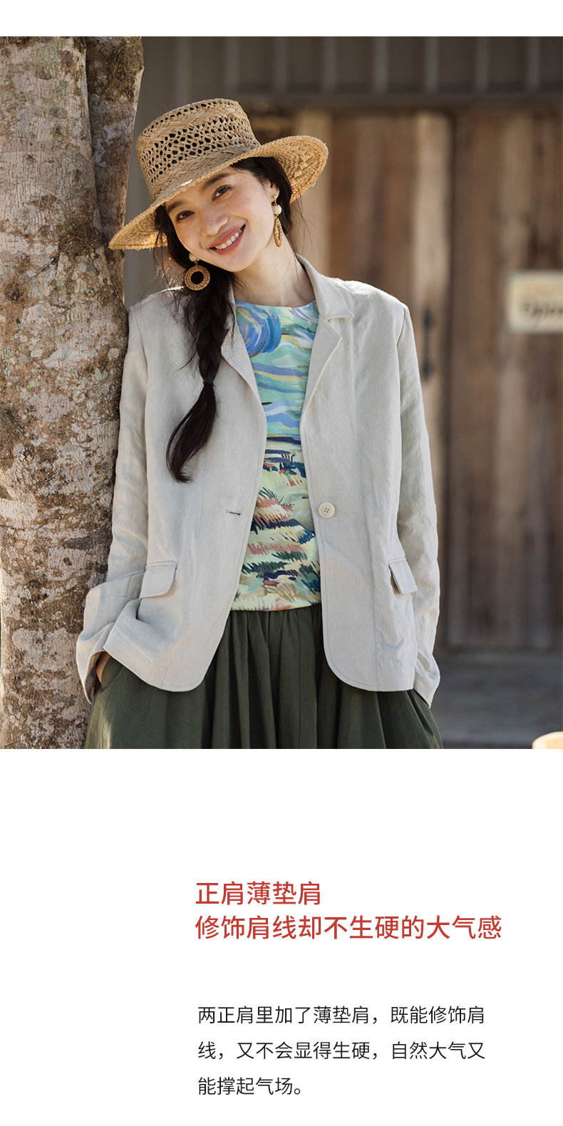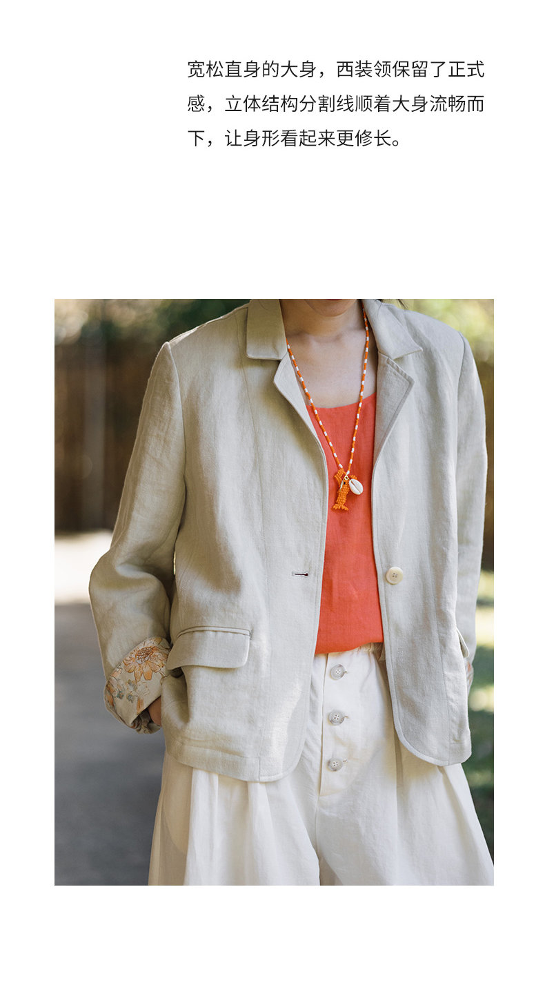 绽放151朵/花事了西装*汉麻亚麻洗水宽松显瘦带垫肩文艺西装外套
