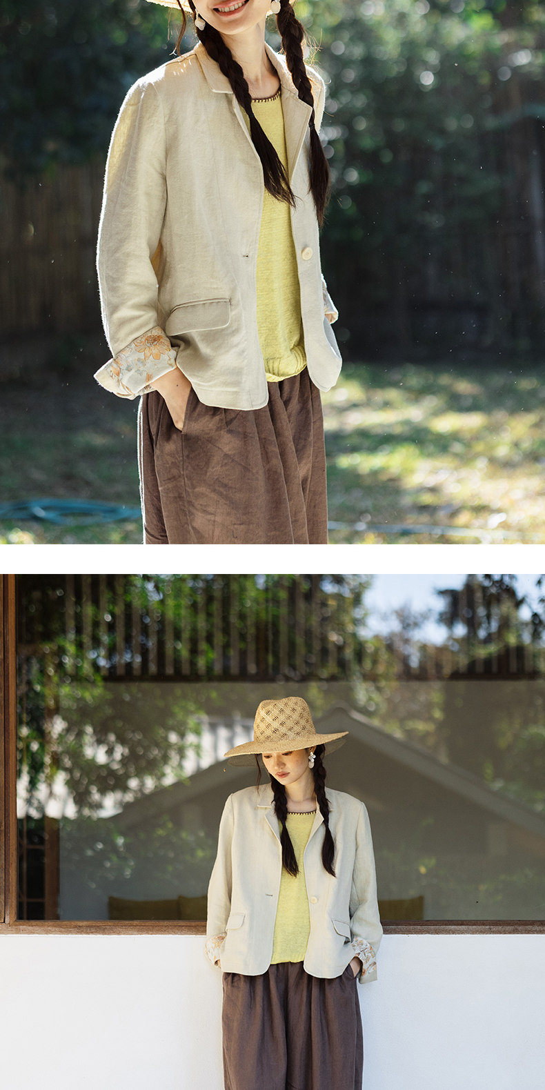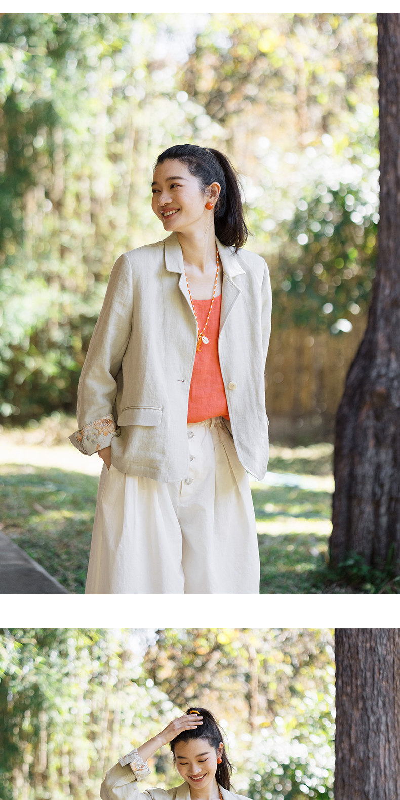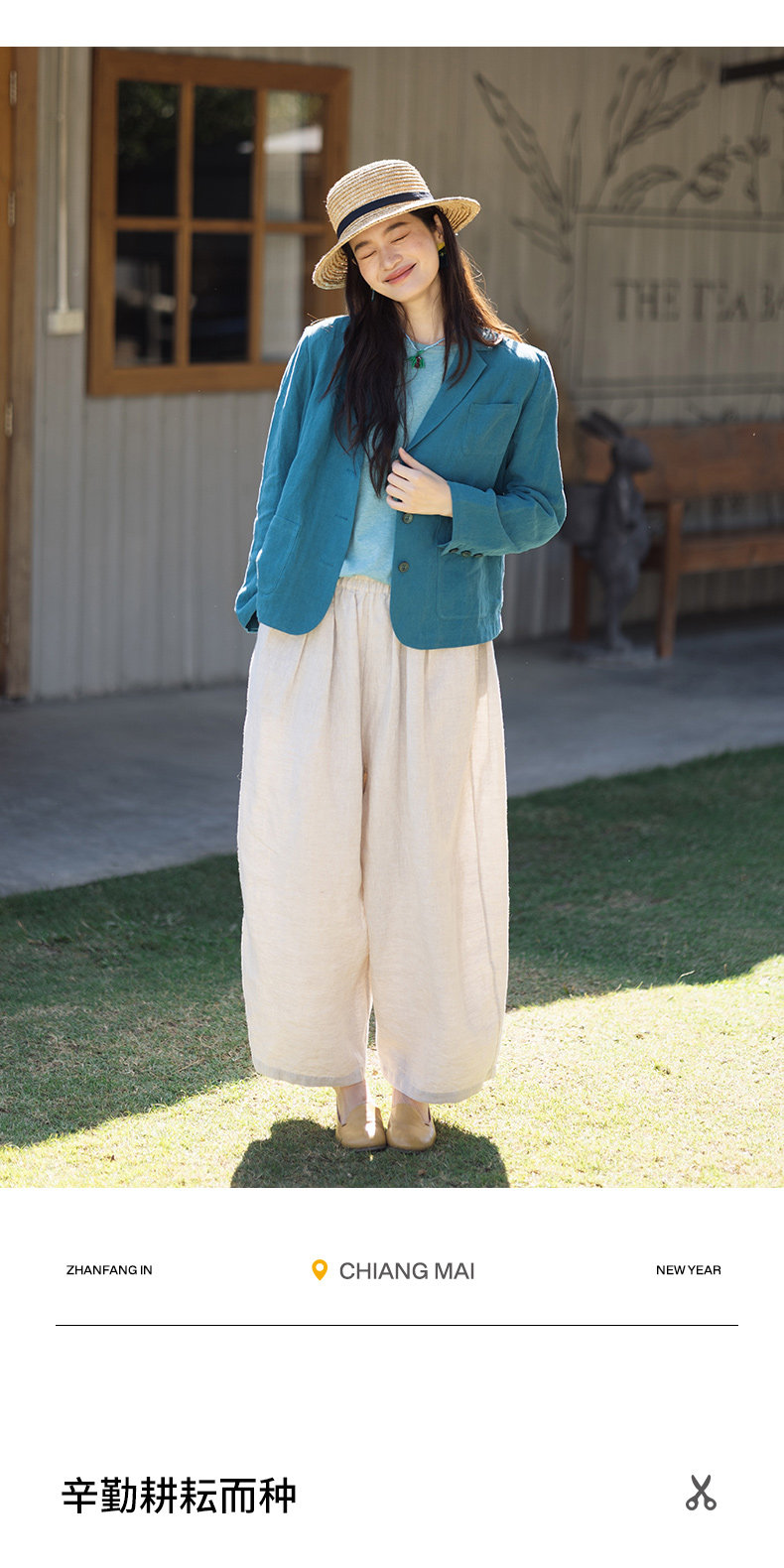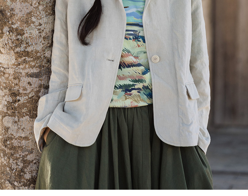 绽放151朵/花事了西装*汉麻亚麻洗水宽松显瘦带垫肩文艺西装外套