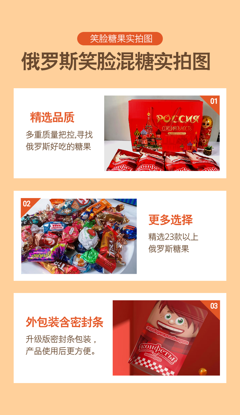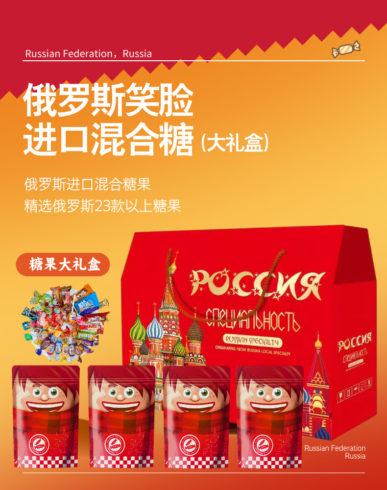 品名:俄罗斯糖果规格1:2袋装,500g/袋 规格2:4袋礼盒装,500g/袋 包装方式:袋装+礼盒/快递中转箱 快递:中通 运费模板:新疆 西藏港澳台不发货 发货时效:48-72h 发货地/产地:哈尔滨/俄罗斯 保质期:12个月 生产日期:25年6月(随批次更新) 销售售卖期:长期 周六周天、节假日除外,早上十点之前的订单是48小时发货 ,到货时间约为2-5天,请您耐心等待 |