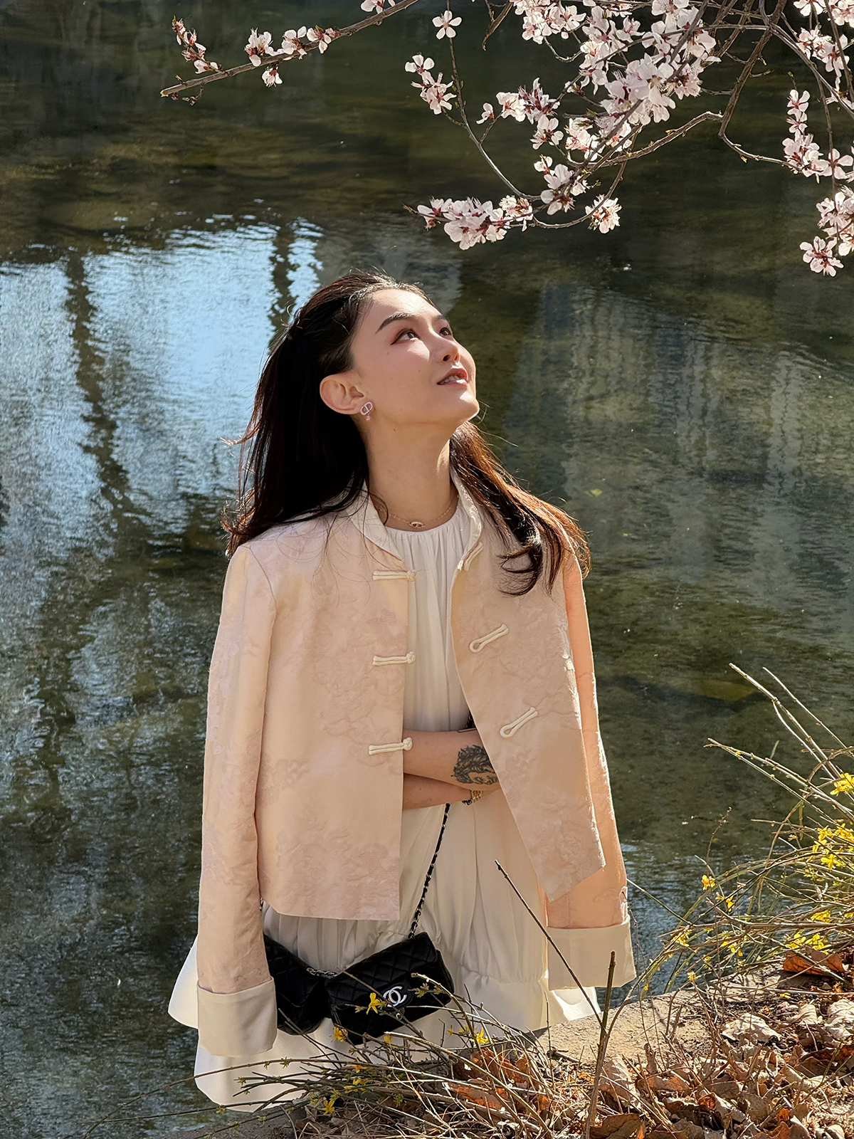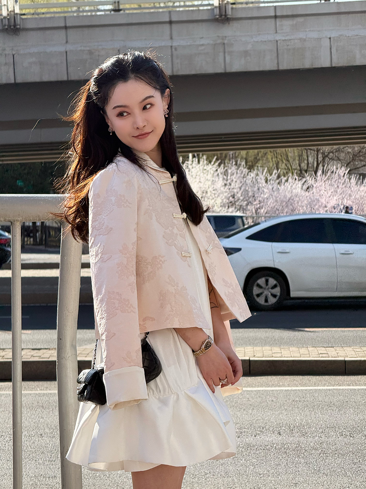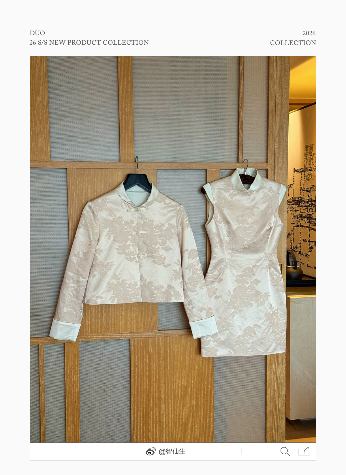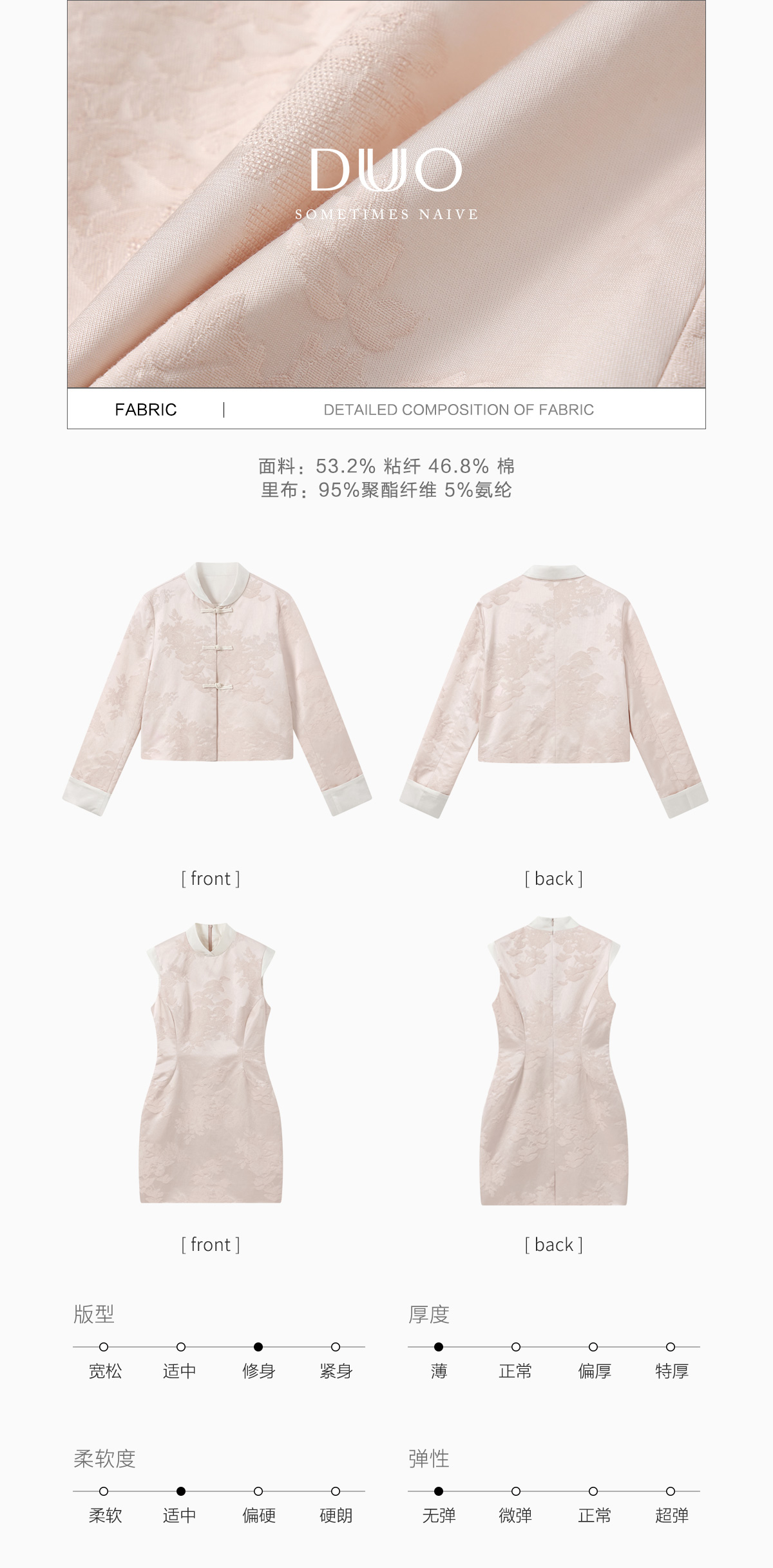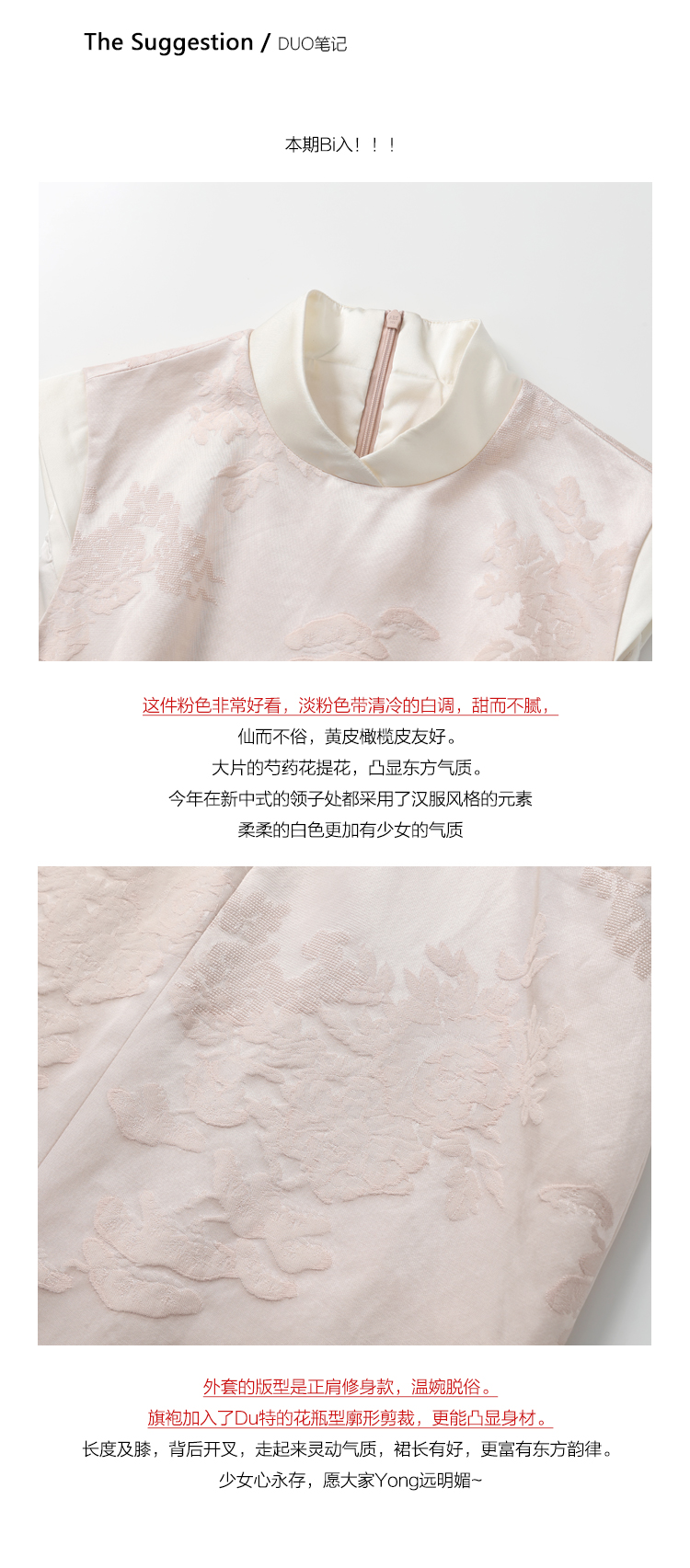 DUO智仙生 粉标 花日2026芍药香柔雾淡粉色新中式外套和少女旗袍