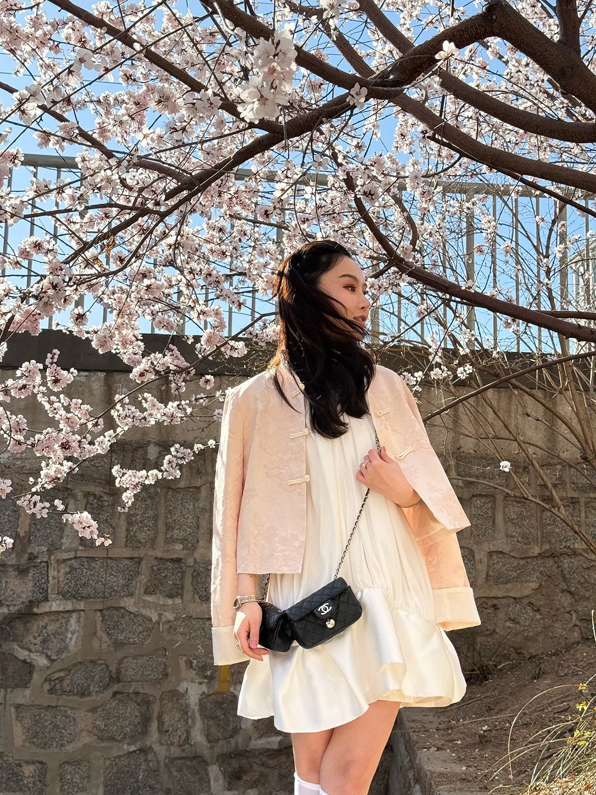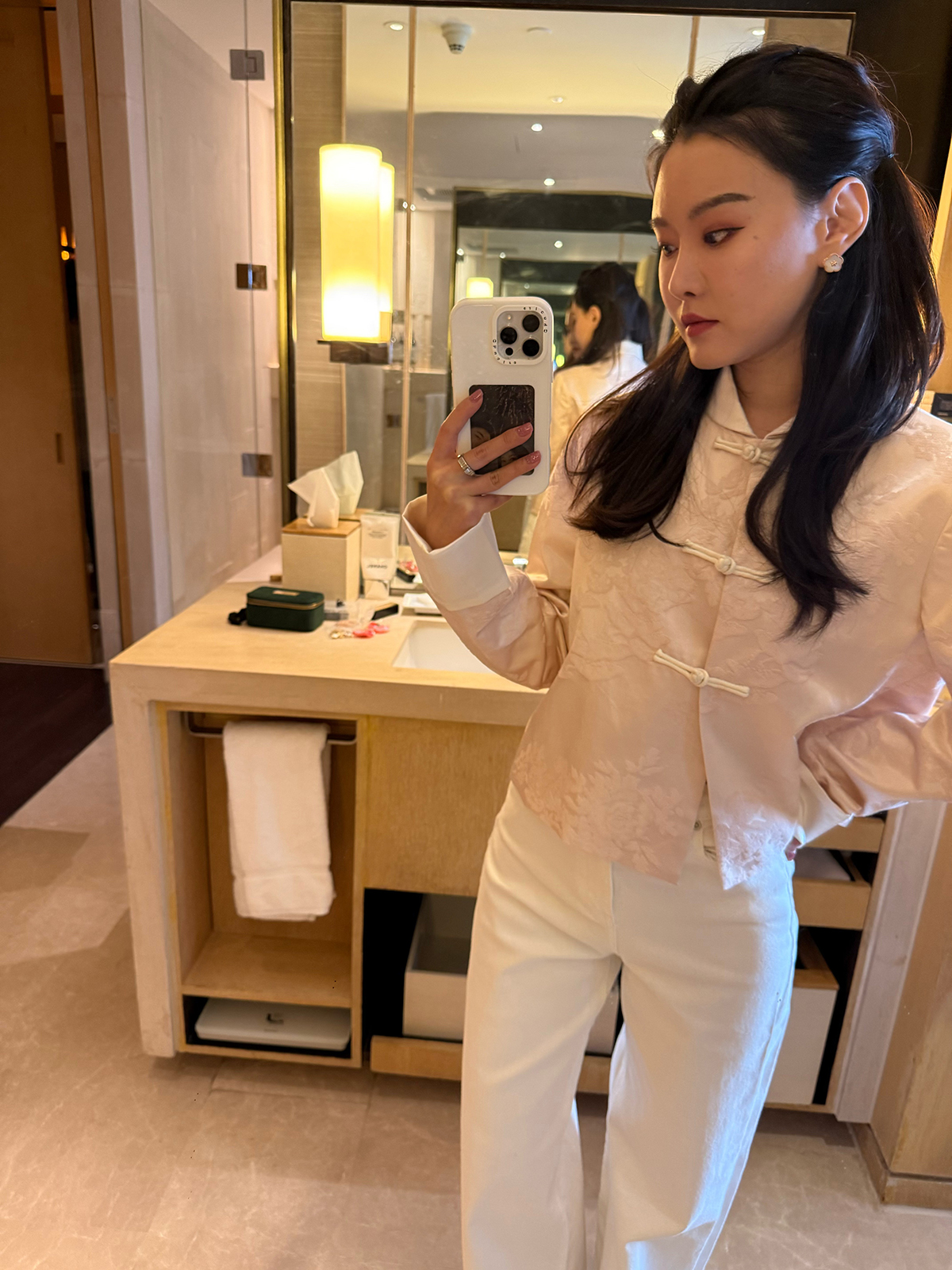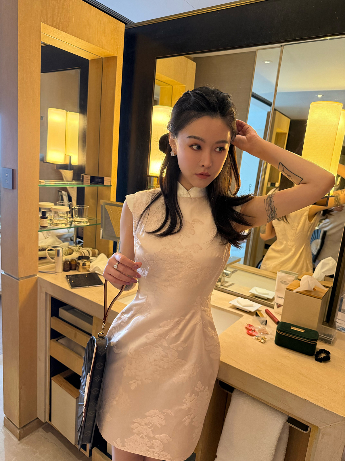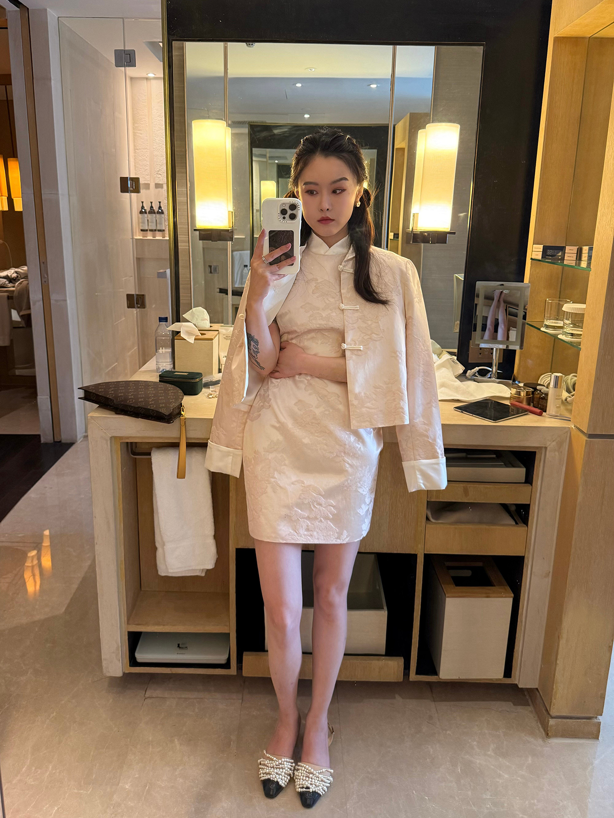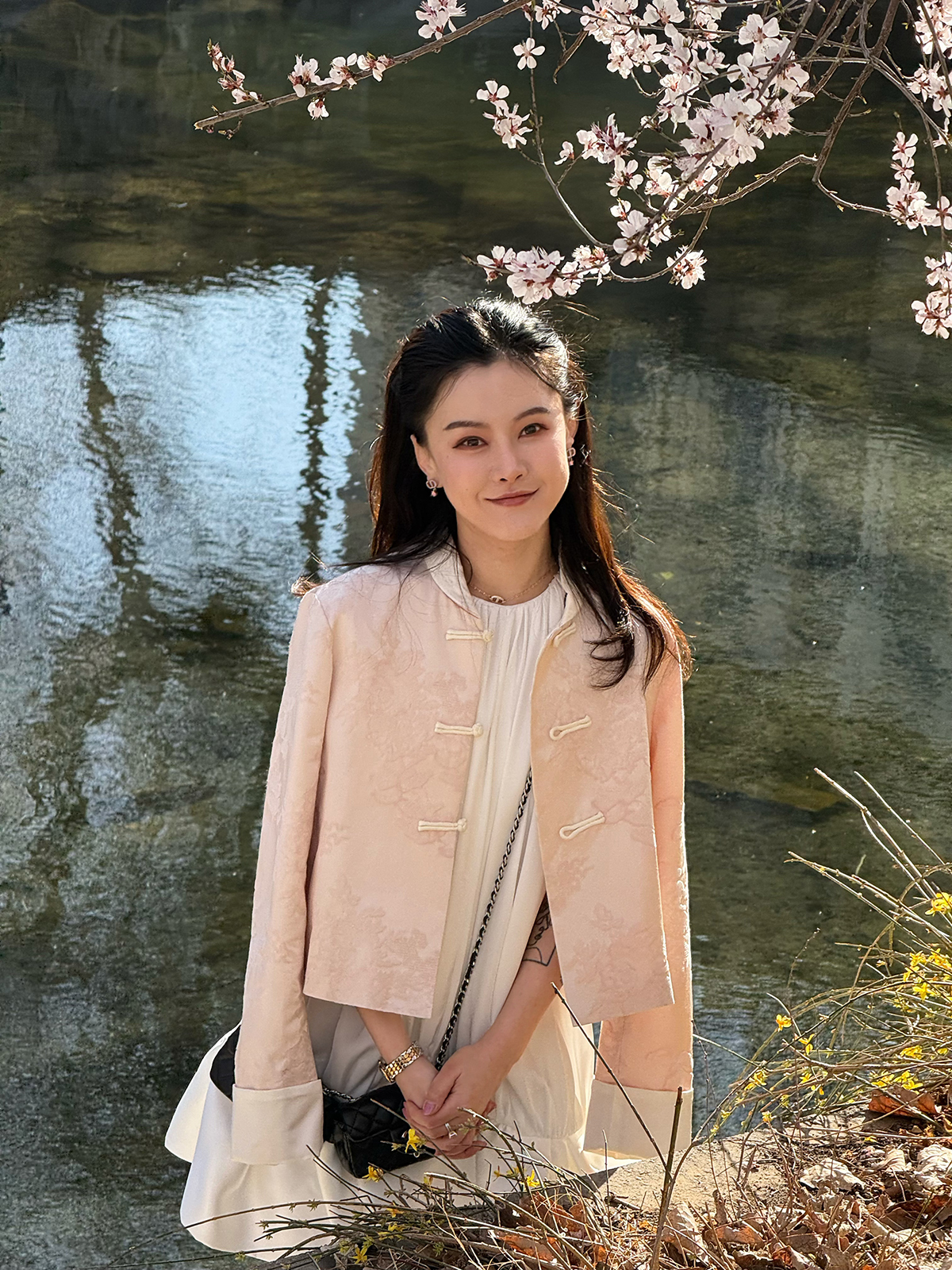 DUO智仙生 粉标 花日2026芍药香柔雾淡粉色新中式外套和少女旗袍
