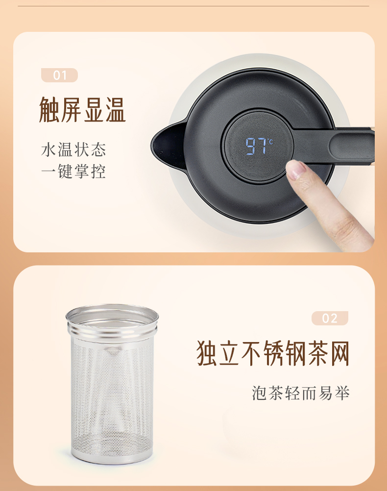 宝顶白芽白茶智能闷泡壶316不锈钢1.5L大容量独立茶仓