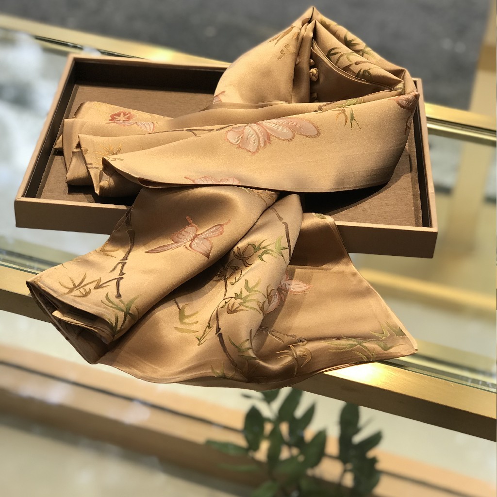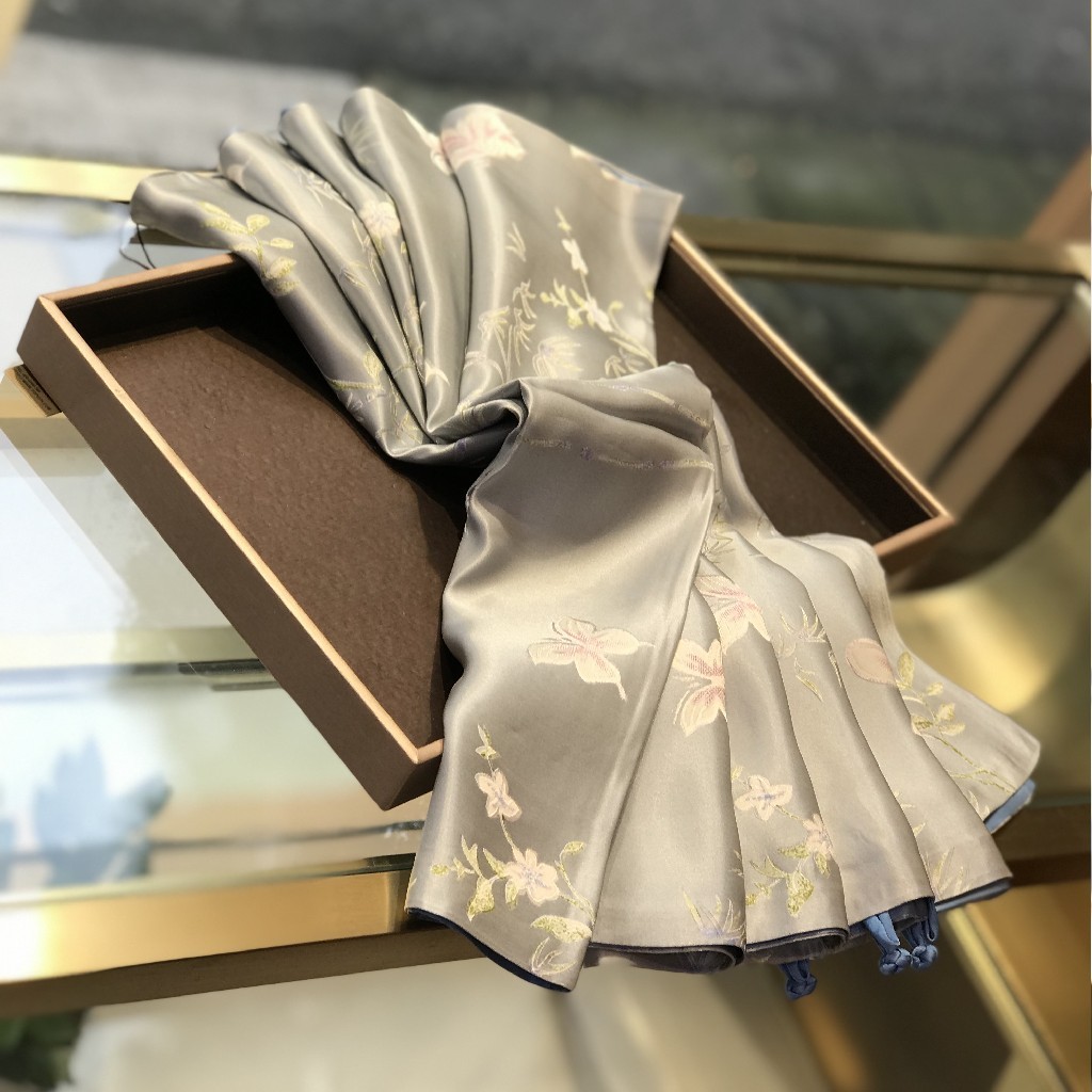 优品堂『华姿』重磅桑蚕丝《最新精湛挖花工艺》双面双层披肩围巾长巾