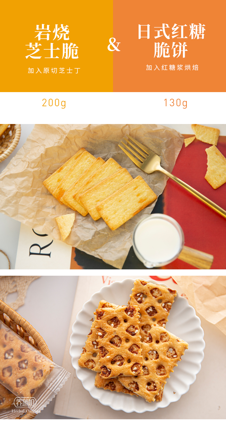 养瑞和丨岩烧芝士脆饼干200g/日式红糖脆饼130g·2袋装·奶酪浓香·口感薄脆香