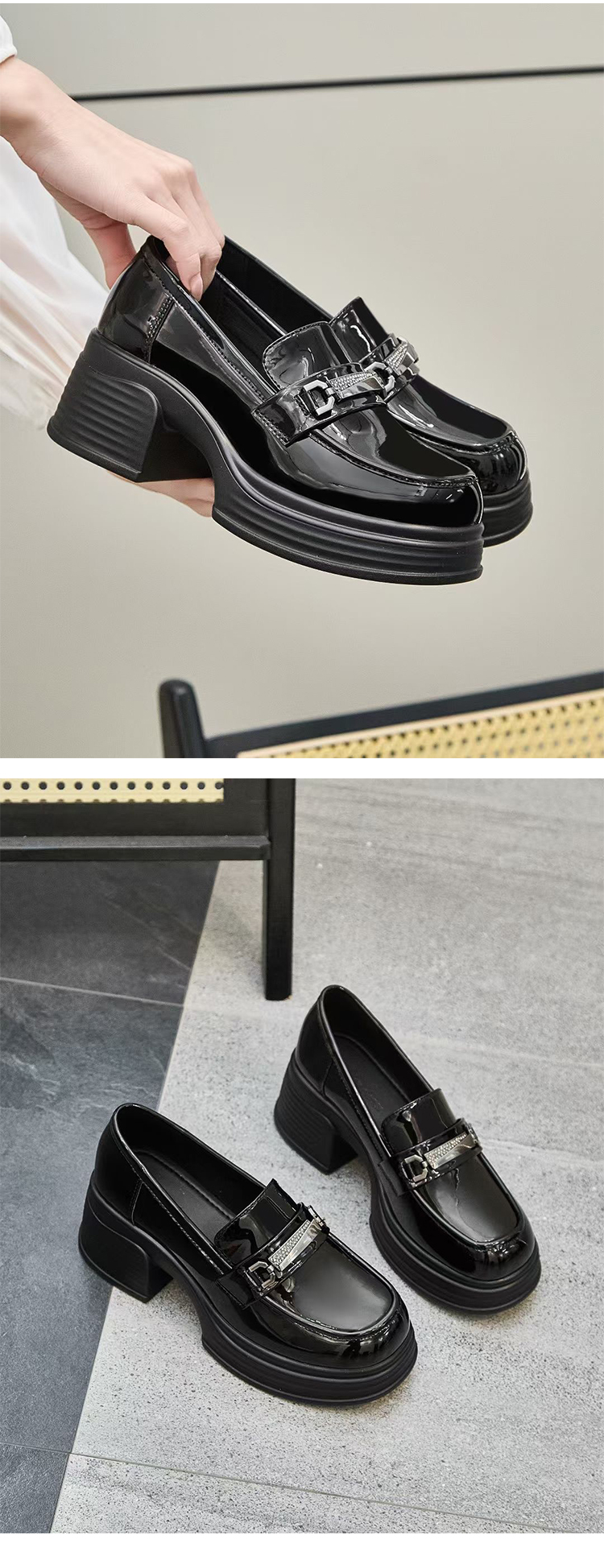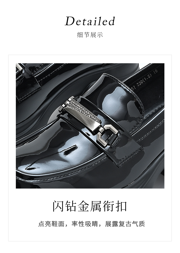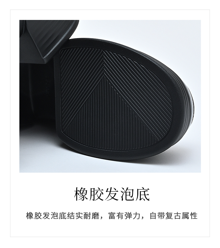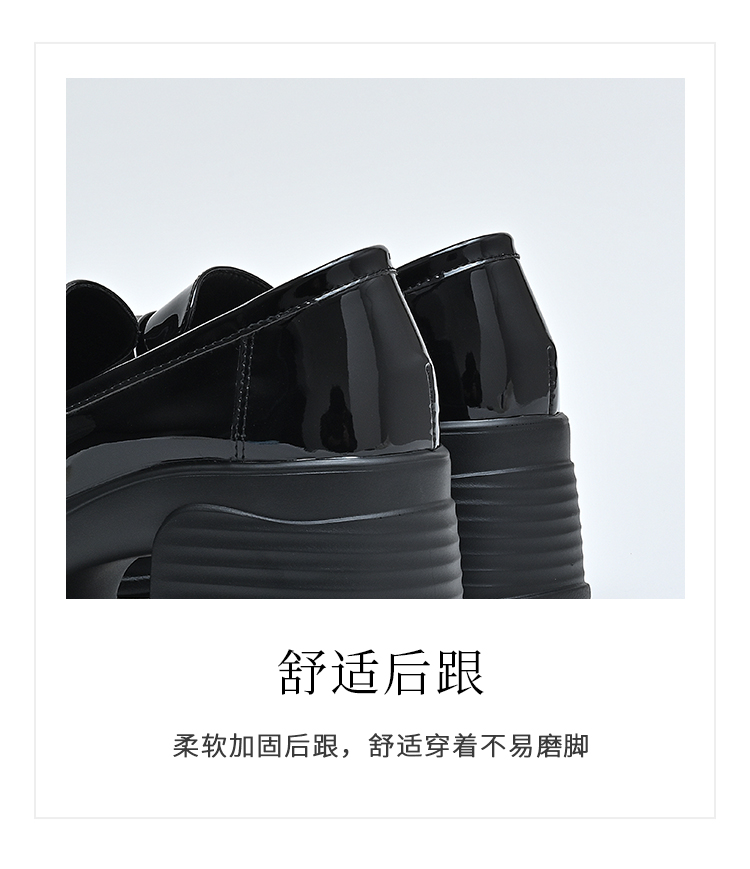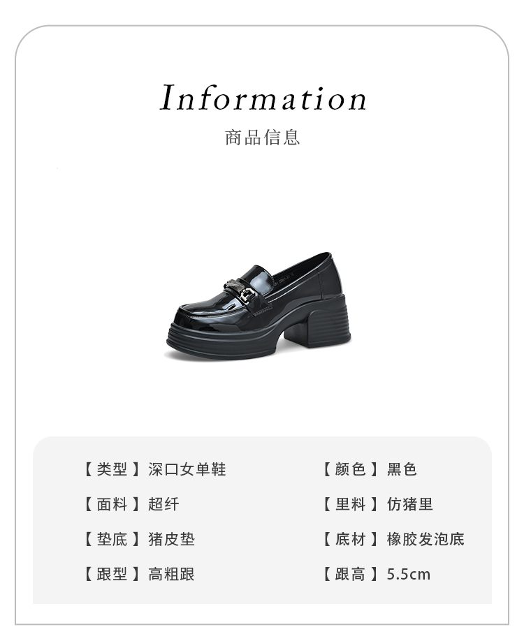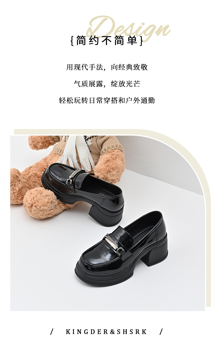 经典鲨2025年百搭圆头黑色高粗跟气质简约显瘦乐福鞋单鞋女KC19-517051