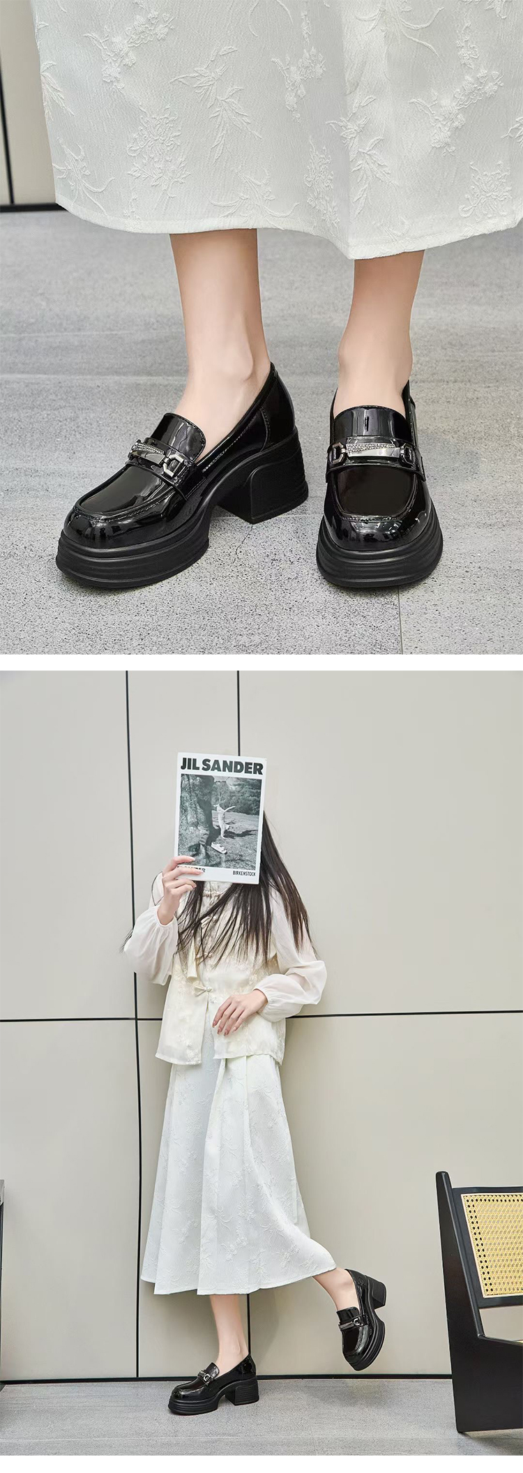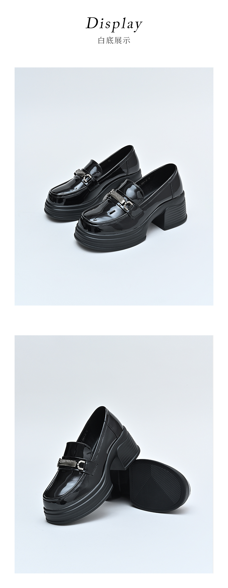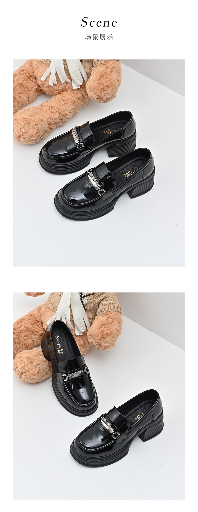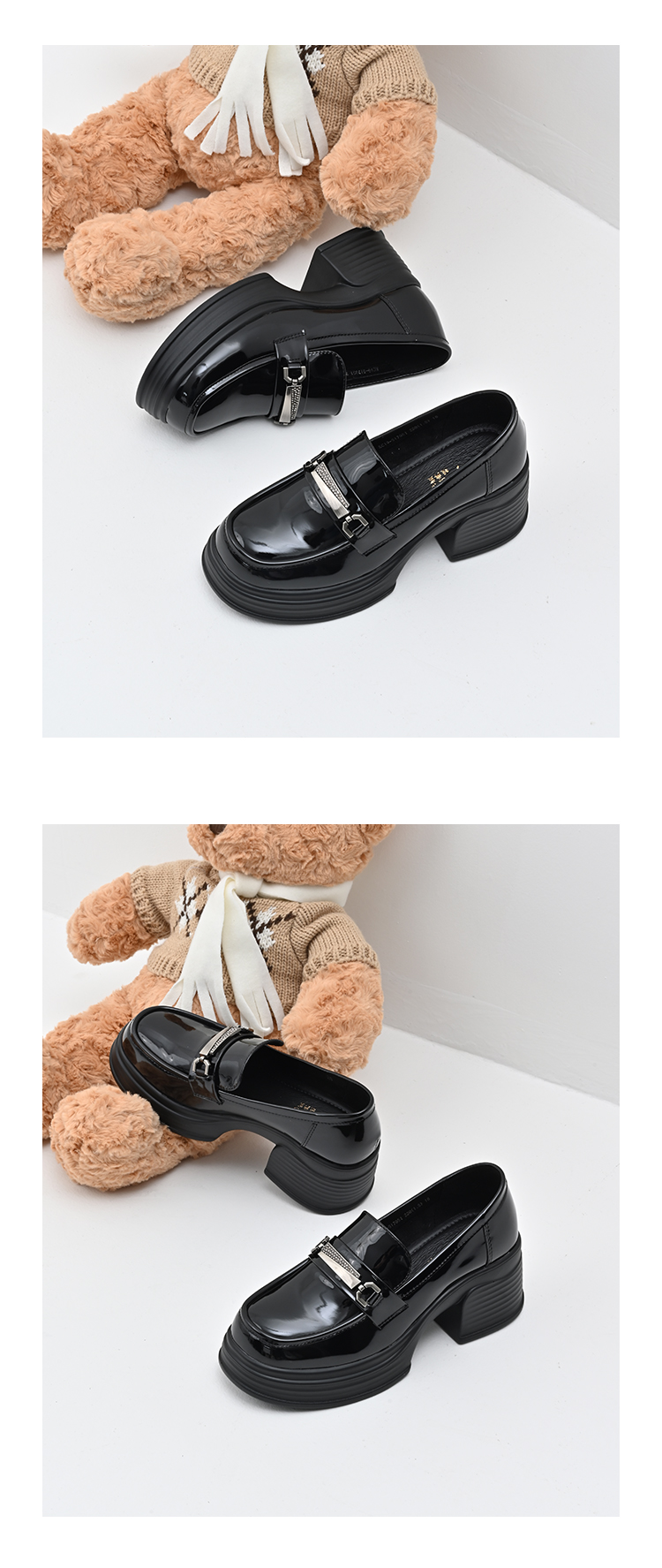 经典鲨2025年百搭圆头黑色高粗跟气质简约显瘦乐福鞋单鞋女KC19-517051