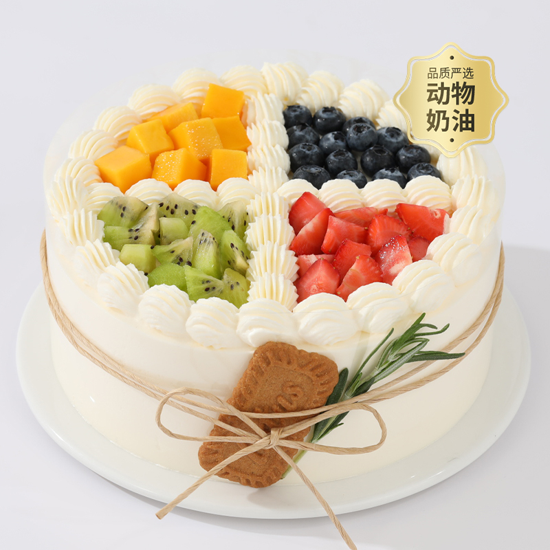 【水果控推荐】6英寸缤纷鲜果乐下午茶,新鲜芒果/草莓/奇异果/蓝莓果粒清甜多汁,鲜果控大满足的缤纷组合(惠州幸福西饼)