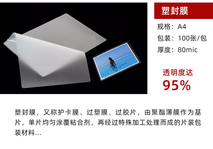 办公用品 塑封膜 100张/包
