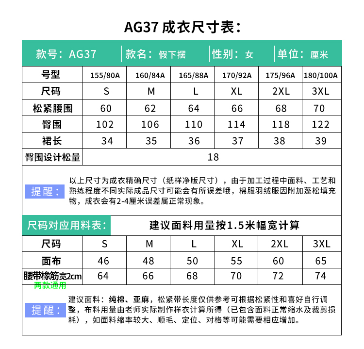 裁缝学苑 AG37卫衣衬衫半身叠穿内搭裙11服装切割图纸牛皮纸样