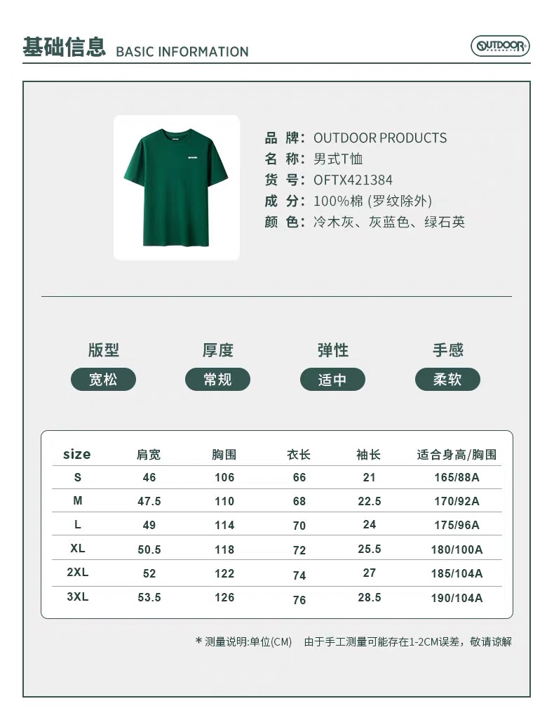 【春上新】【8折】6楼OUTDOOR PRODUCTS新款户外吸湿速干男女同款短袖 原价199折后价159元