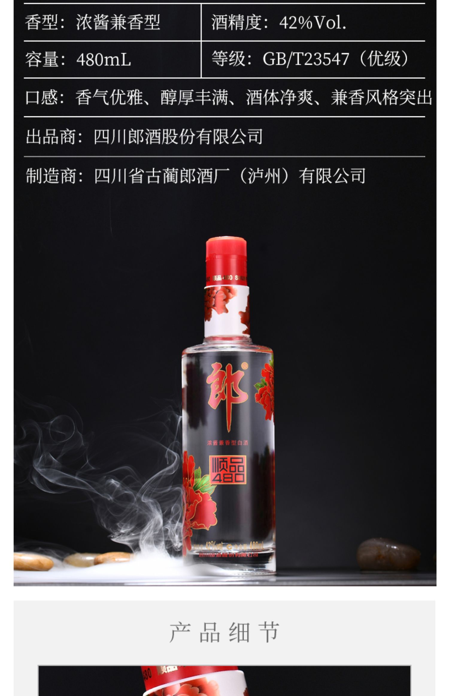 郎酒郎牌顺品郎红顺 兼香型白酒480ml(45度)