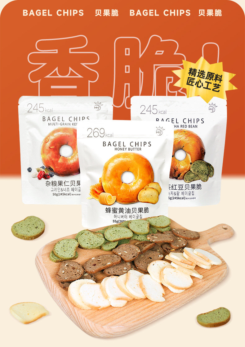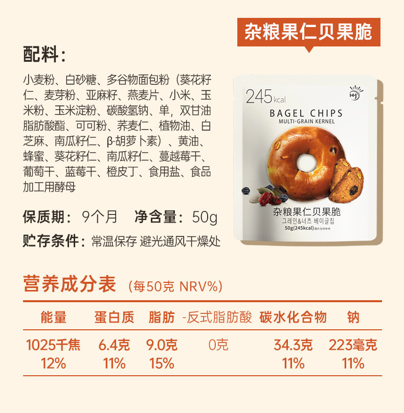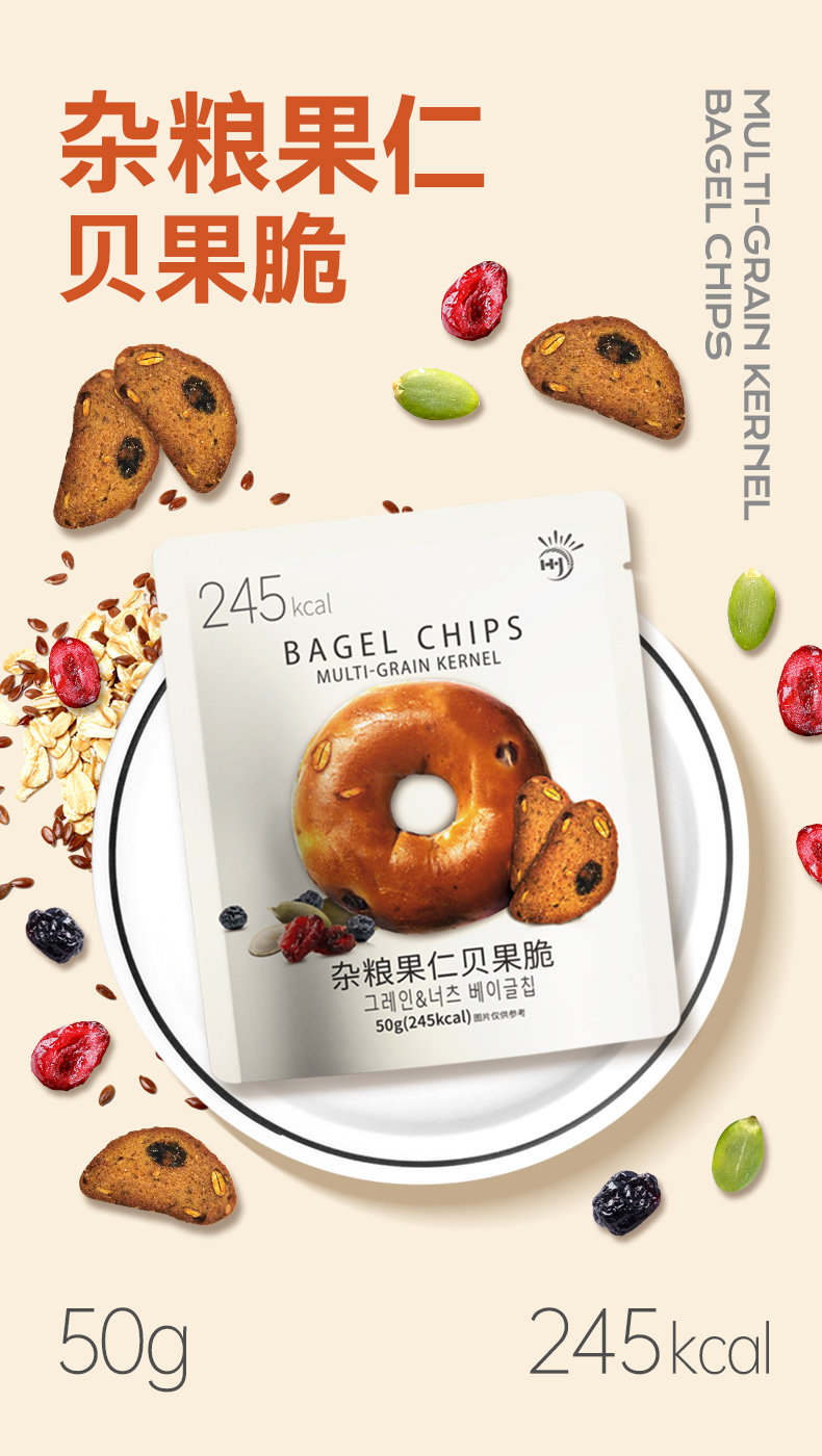 贝果面包干脆片杂粮贝果脆杂粮果仁小饼干50g/袋