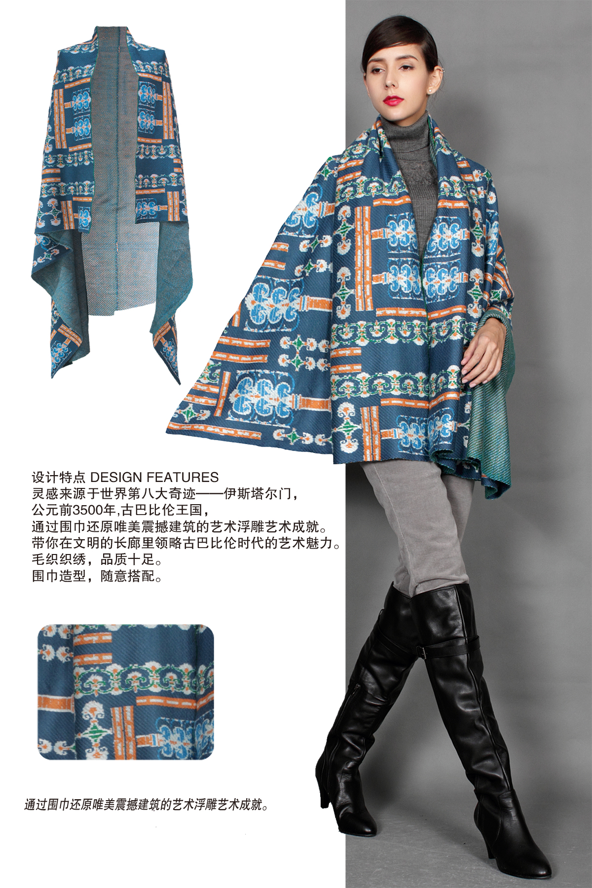 品牌风格:源自千年文学和万年艺术的时装,让你的气质内涵一枝独秀,精彩的品质,华丽的风格,炫耀的视觉,让你的衣品从此与众不同,标记你深厚的文化内涵与艺术气息。