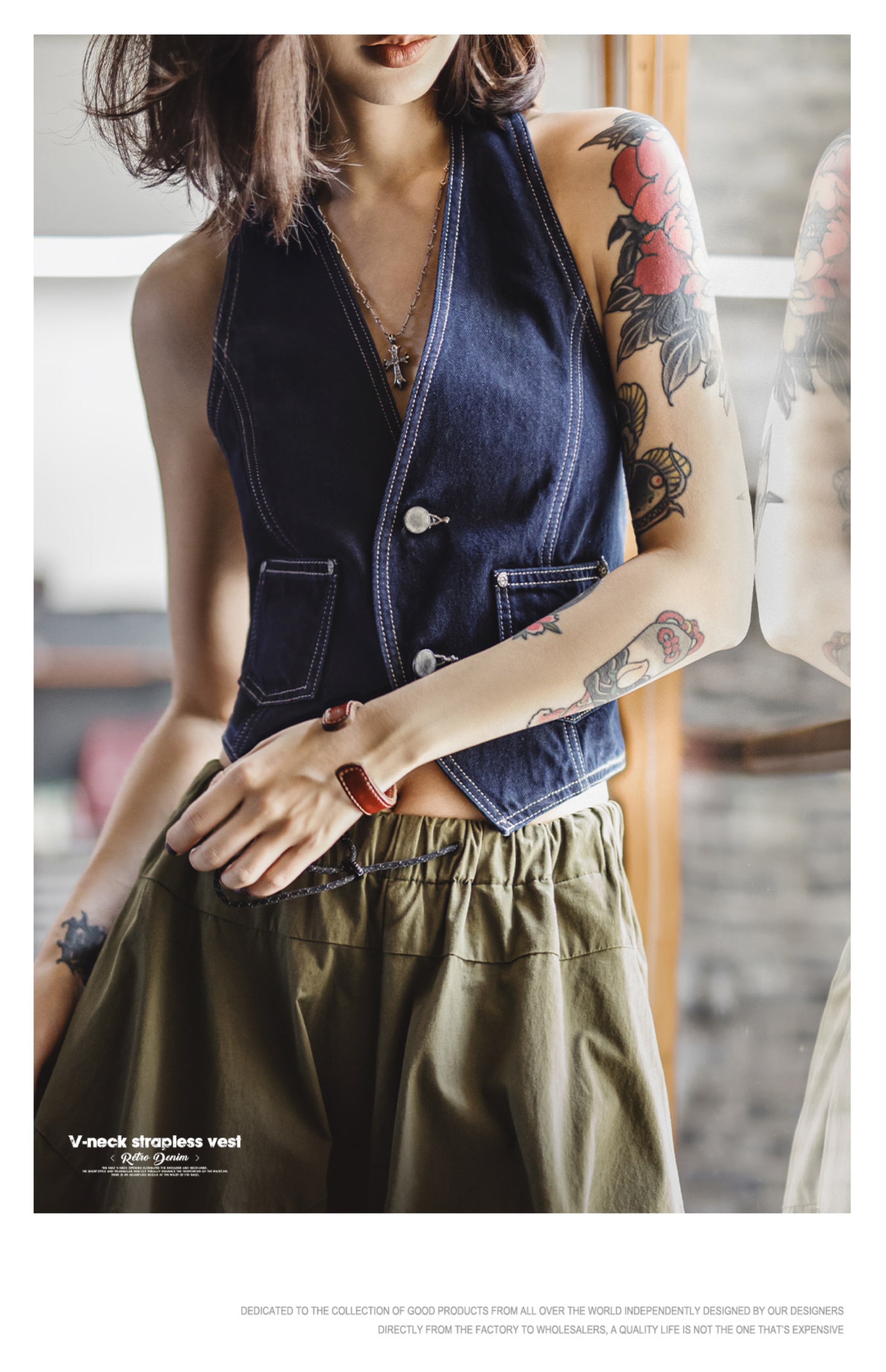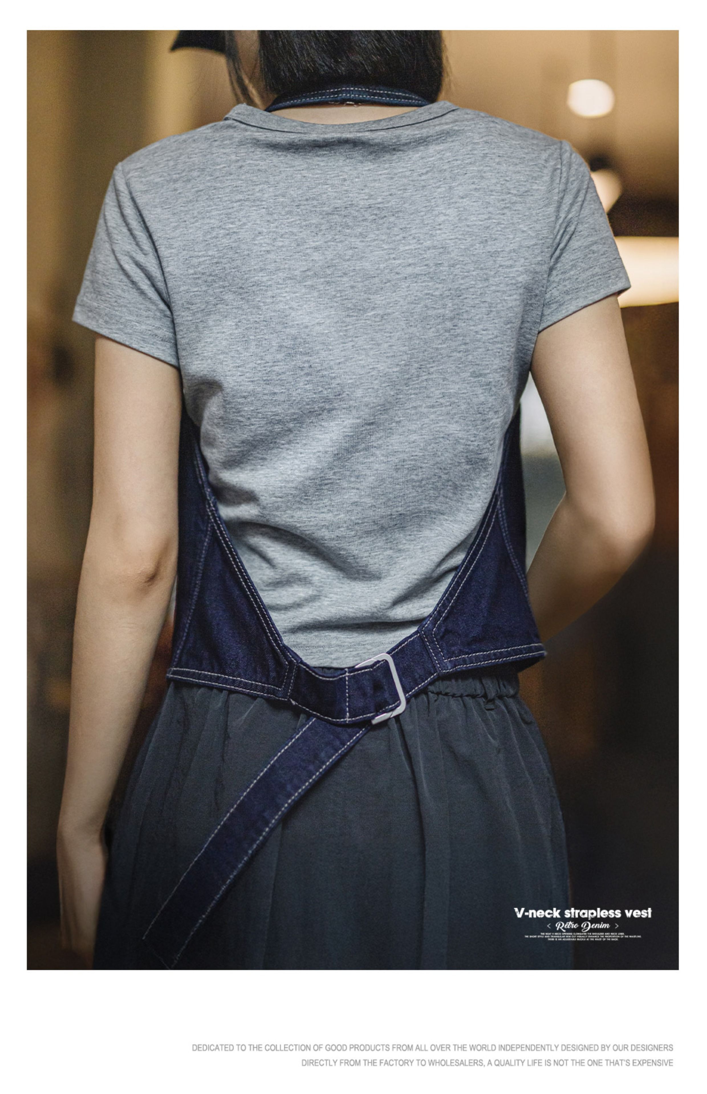 马登美式叠穿无袖V领背心开衫马甲修身外穿坎肩露背挂脖短上衣女