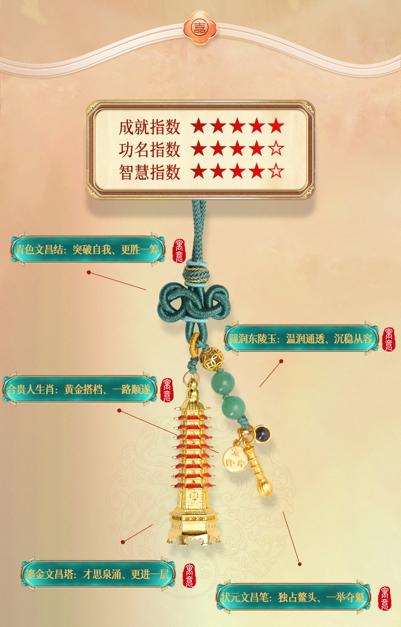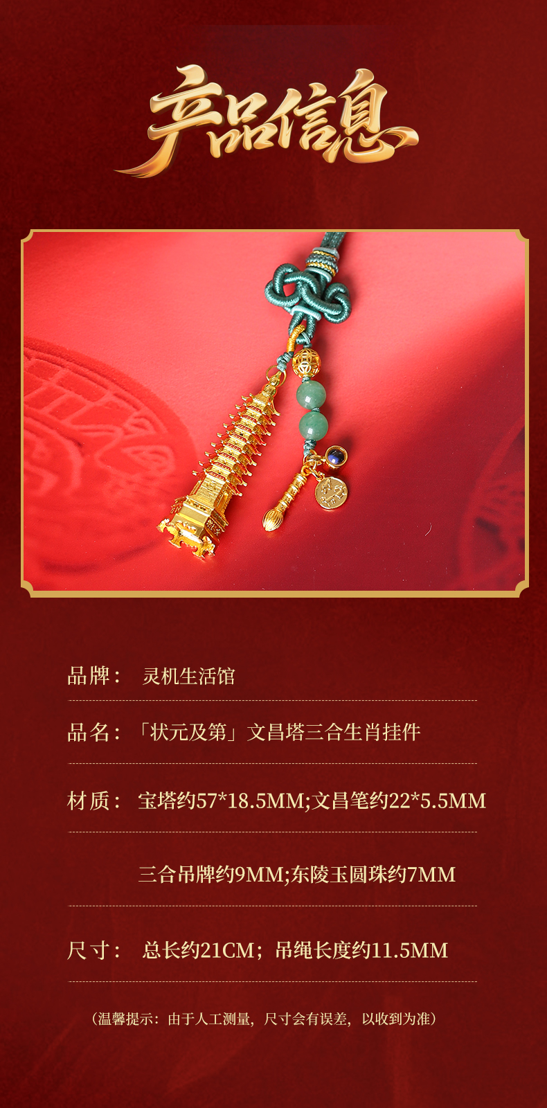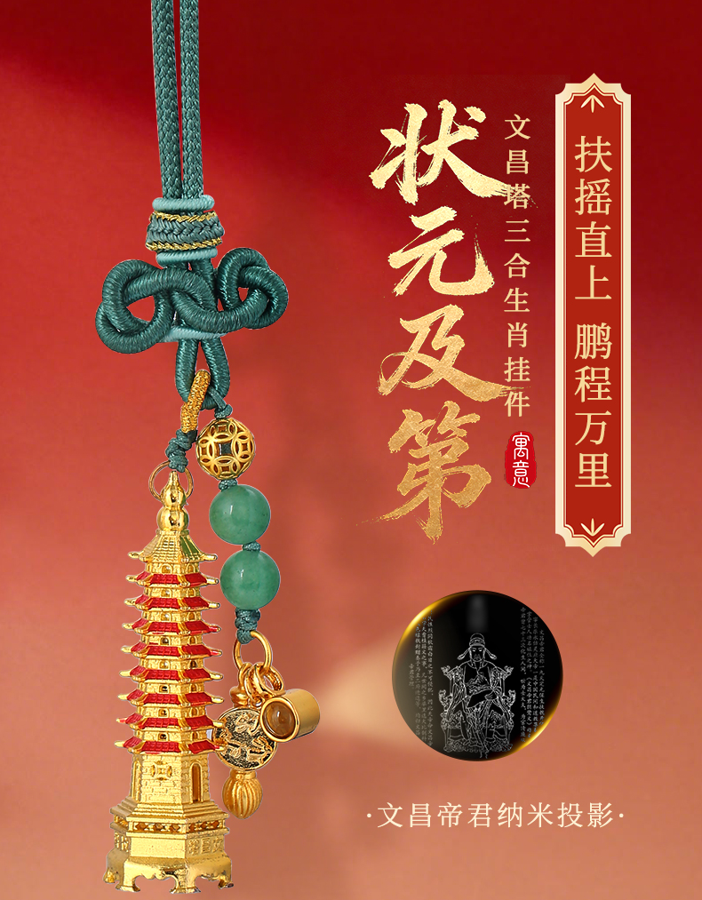 灵机麦玲玲状元及第文昌塔三合十二生肖挂饰中考高考金榜题名礼物