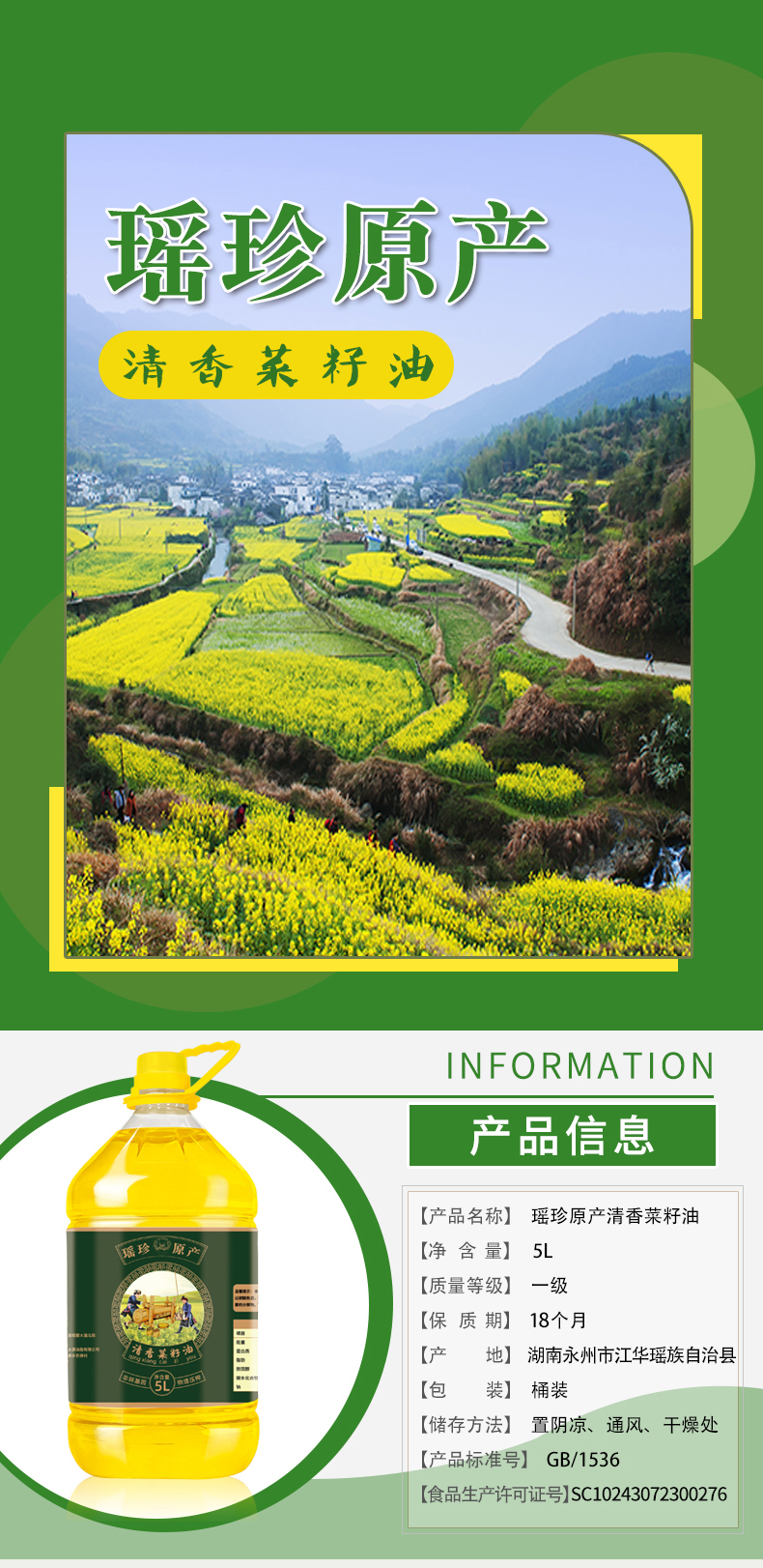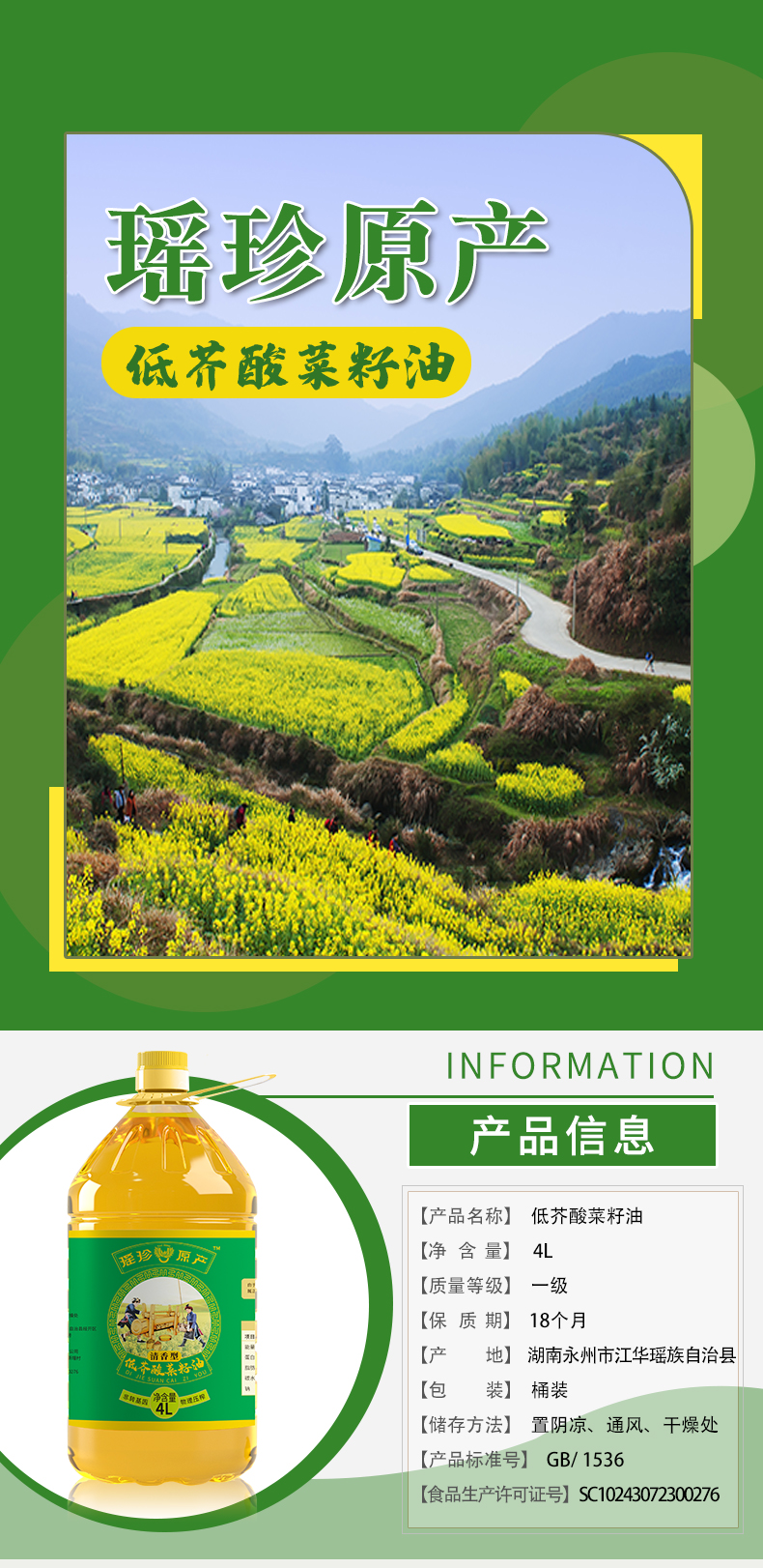 瑶珍菜籽油4L 5L