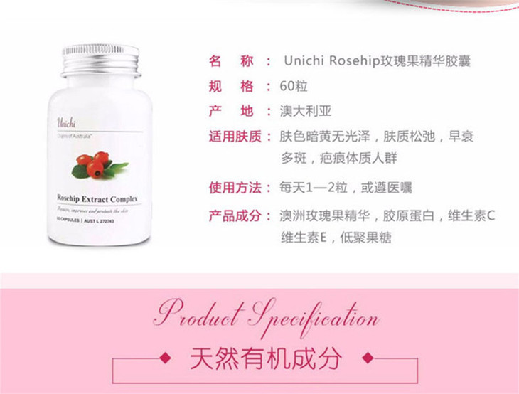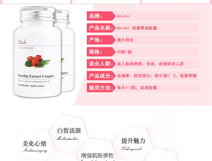 (永久下架)澳洲Unichi 玫瑰果精华胶 60粒